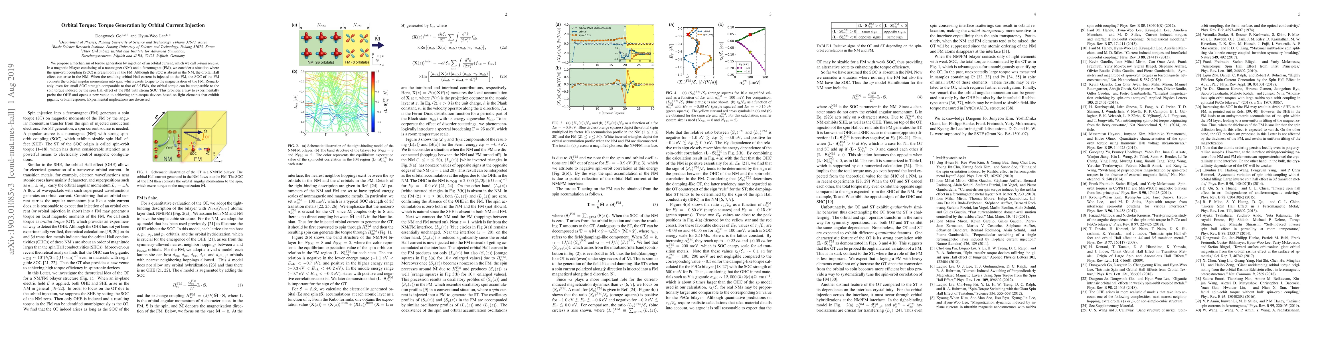 This paper proposes a novel mechanism for torque generation via the injection of an orbital current termed "orbital torque." It describes how the orbital Hall effect in a nonmagnetic layer can transfer orbital angular momentum to a ferromagnetic layer, generating significant torque even with small spin-orbit coupling, thus offering new pathways for spin-torque devices.