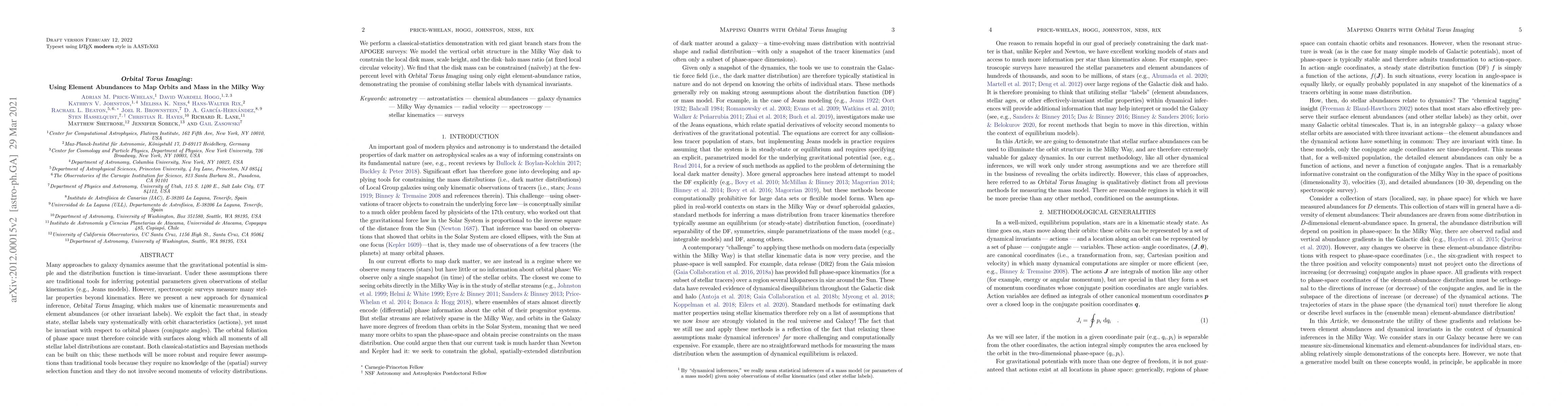 Many approaches to galaxy dynamics assume that the gravitational potential is simple and the distribution function is time-invariant. Under these assumptions there are traditional tools for inferring potential parameters given observations of stellar kinematics (e.g., Jeans models). However, spectroscopic surveys measure many stellar properties beyond kinematics. Here we present a new approach for dynamical inference, Orbital Torus Imaging, which makes use of kinematic measurements and element abundances (or other invariant labels). We exploit the fact that, in steady state, stellar labels vary systematically with orbit characteristics (actions), yet must be invariant with respect to orbital phases (conjugate angles). The orbital foliation of phase space must therefore coincide with surfaces along which all moments of all stellar label distributions are constant. Both classical-statistics and Bayesian methods can be built on this; these methods will be more robust and require fewer assumptions than traditional tools because they require no knowledge of the (spatial) survey selection function and they do not involve second moments of velocity distributions. We perform a classical-statistics demonstration with red giant branch stars from the APOGEE surveys: We model the vertical orbit structure in the Milky Way disk to constrain the local disk mass, scale height, and the disk--halo mass ratio (at fixed local circular velocity). We find that the disk mass can be constrained (na\"ively) at the few-percent level with Orbital Torus Imaging using only eight element-abundance ratios, demonstrating the promise of combining stellar labels with dynamical invariants.