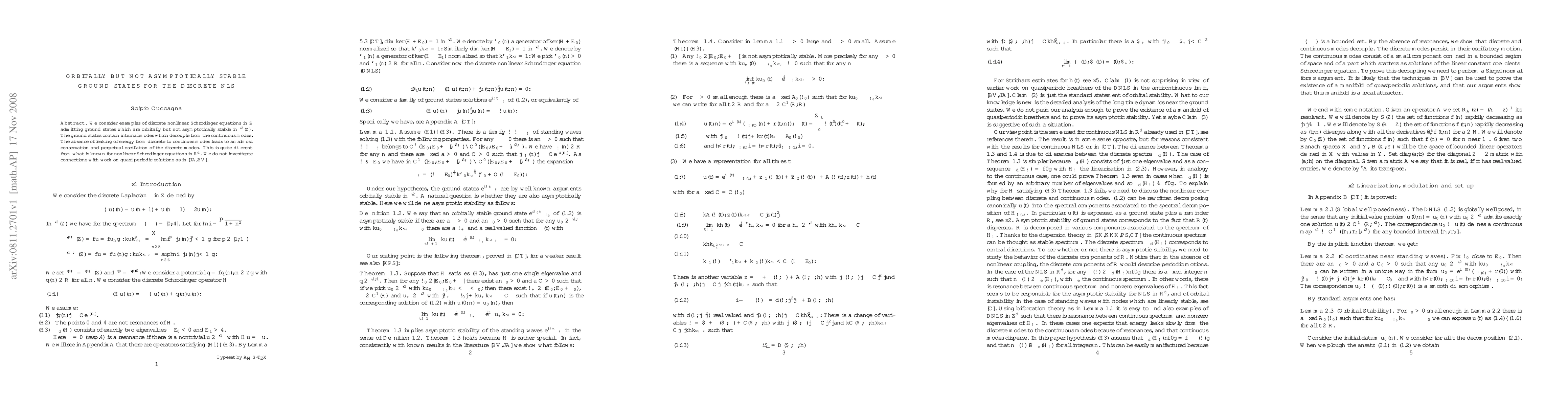 This paper examines discrete nonlinear Schrödinger equations with ground states that are orbitally stable but not asymptotically stable in l^2(Z). The study reveals that the ground states exhibit perpetual oscillation due to the decoupling of internal modes, contrasting with the behavior seen in Euclidean space nonlinear Schrödinger equations.