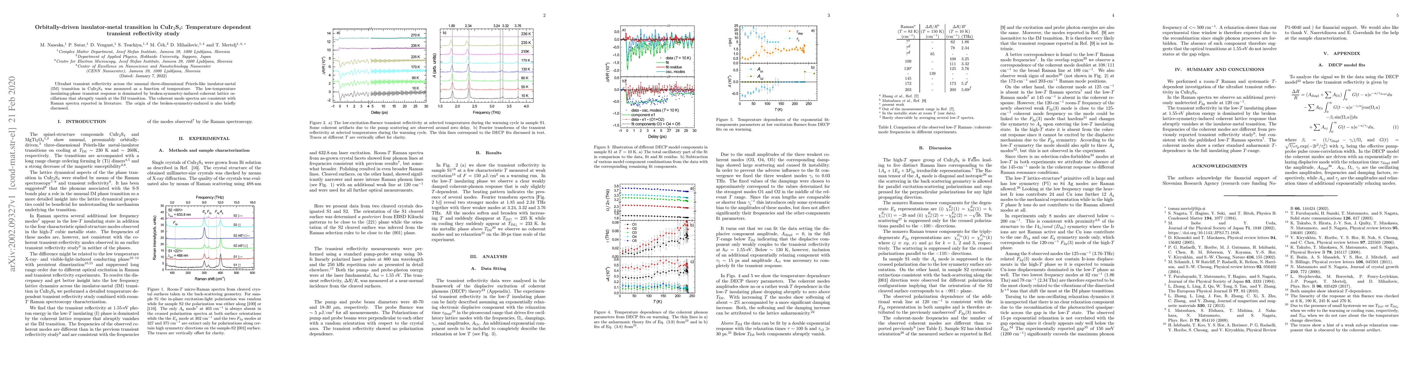 Ultrafast transient reflectivity across the unusual three-dimensional Peierls-like insulator-metal (IM) transition in CuIr_{2}S_{4} was measured as a function of temperature. The low-temperature insulating-phase transient response is dominated by broken-symmetry-induced coherent lattice oscillations that abruptly vanish at the IM transition. The coherent mode spectra are consistent with Raman spectra reported in literature. The origin of the broken-symmetry-induced is also briefly discussed.