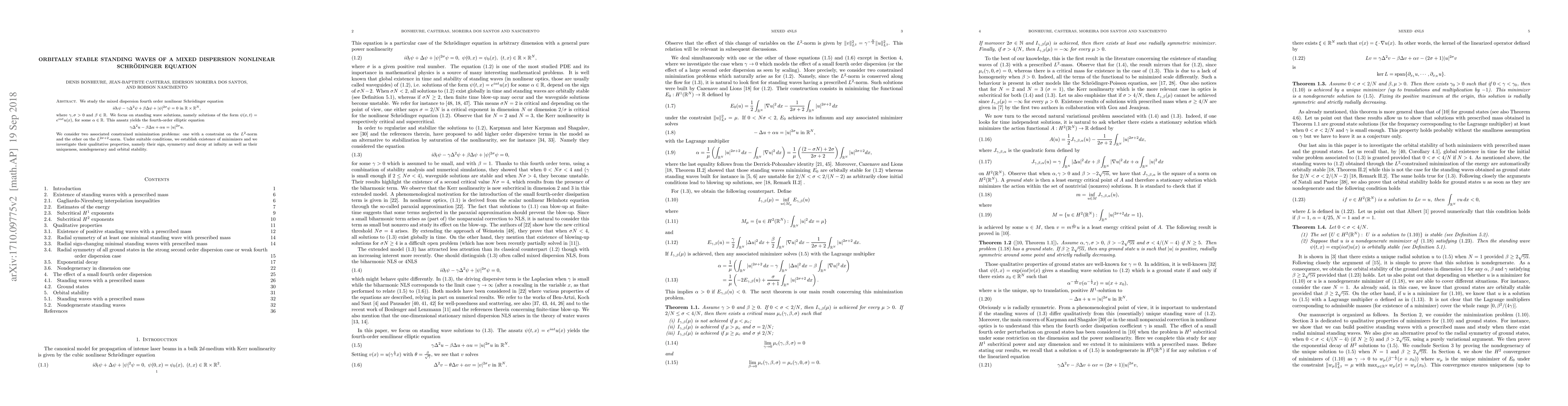 This paper investigates standing wave solutions of a mixed dispersion fourth-order nonlinear Schrödinger equation, deriving an associated fourth-order elliptic equation. The authors establish existence and analyze the qualitative properties of minimizers under constraints on $L^2$ and $L^{2\sigma+2}$ norms, focusing on their sign, symmetry, decay, uniqueness, nondegeneracy, and orbital stability.