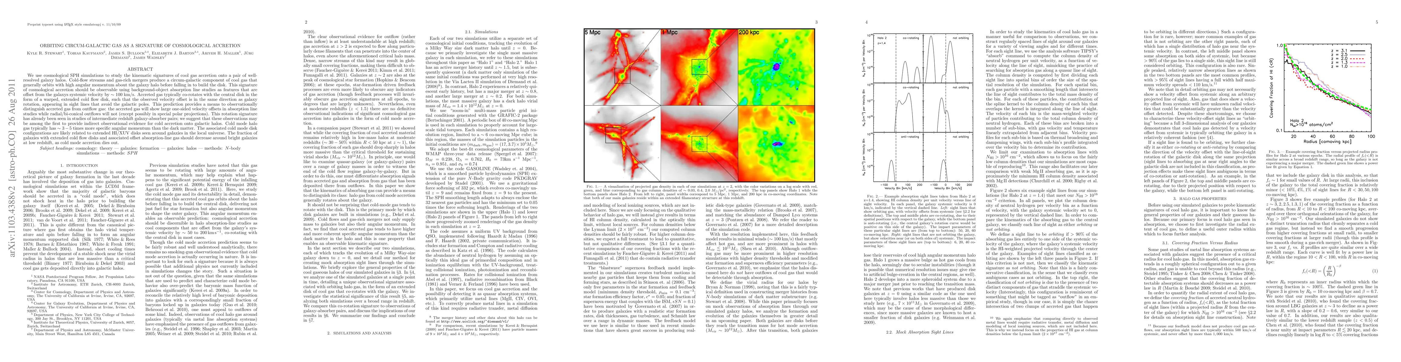 This paper uses cosmological simulations to show that cool gas accreting onto galaxy halos forms a circum-galactic component with high angular momentum, observable via absorption lines offset by ~100 km/s from the galaxy's systemic velocity. This accretion signature distinguishes accreted gas from outflow gas, providing a method to indirectly observe cold accretion onto galactic halos.