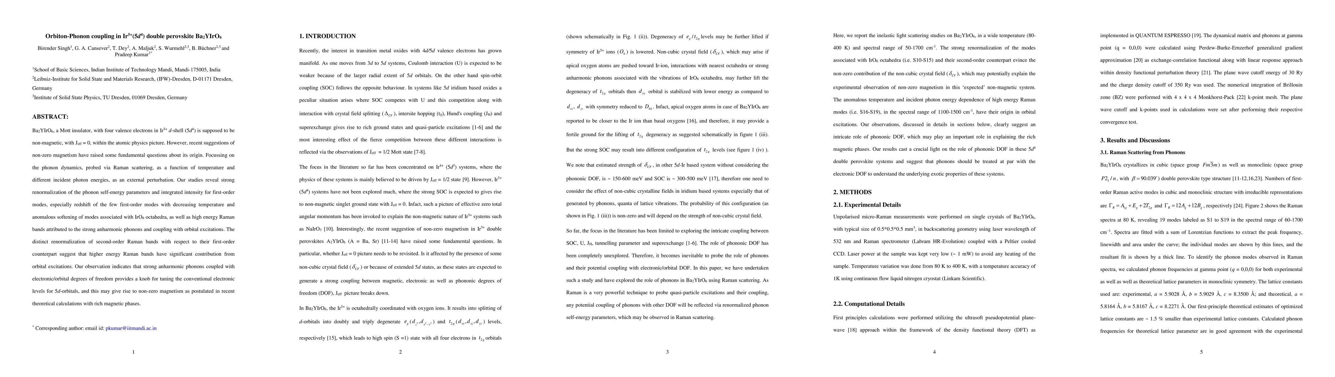 Ba2YIrO6, a Mott insulator, with four valence electrons in Ir5+ d-shell (5d4) is supposed to be non-magnetic, with Jeff = 0, within the atomic physics picture. However, recent suggestions of non-zero magnetism have raised some fundamental questions about its origin. Focussing on the phonon dynamics, probed via Raman scattering, as a function of temperature and different incident photon energies, as an external perturbation. Our studies reveal strong renormalization of the phonon self-energy parameters and integrated intensity for first-order modes, especially redshift of the few first-order modes with decreasing temperature and anomalous softening of modes associated with IrO6 octahedra, as well as high energy Raman bands attributed to the strong anharmonic phonons and coupling with orbital excitations. The distinct renormalization of second-order Raman bands with respect to their first-order counterpart suggest that higher energy Raman bands have significant contribution from orbital excitations. Our observation indicates that strong anharmonic phonons coupled with electronic/orbital degrees of freedom provides a knob for tuning the conventional electronic levels for 5d-orbitals, and this may give rise to non-zero magnetism as postulated in recent theoretical calculations with rich magnetic phases.