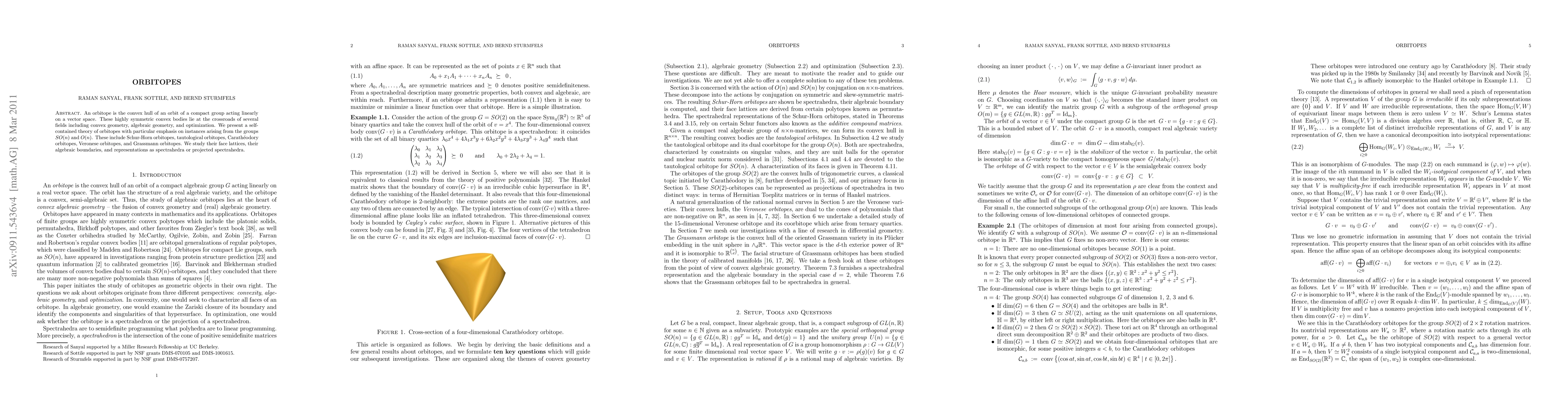 This paper develops a comprehensive theory of orbitopes, which are convex hulls of orbits under the action of compact groups like SO(n) and O(n). It explores their geometric and algebraic properties, including face lattices, boundary hypersurfaces, and representations as spectrahedra or projected spectrahedra.