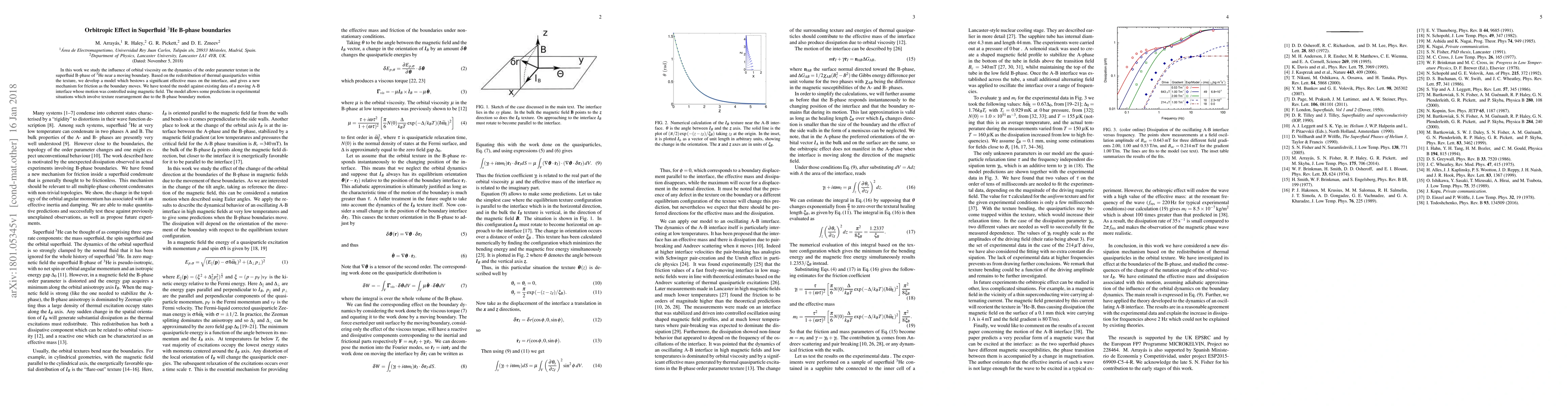 In this work we study the influence of orbital viscosity on the dynamics of the order parameter texture in the superfluid B-phase of $^3$He near a moving bounda ry. Based on the redistribution of thermal quasiparticles within the texture, we develop a model which bestows a significant effective mass on the interface, an d gives a new mechanism for friction as the boundary moves. We have tested the model against existing data of a moving A-B interface whose motion was controlled using magnetic field. The model allows some predictions in experimental situations which involve texture rearrangement due to the B-phase boundary motion.