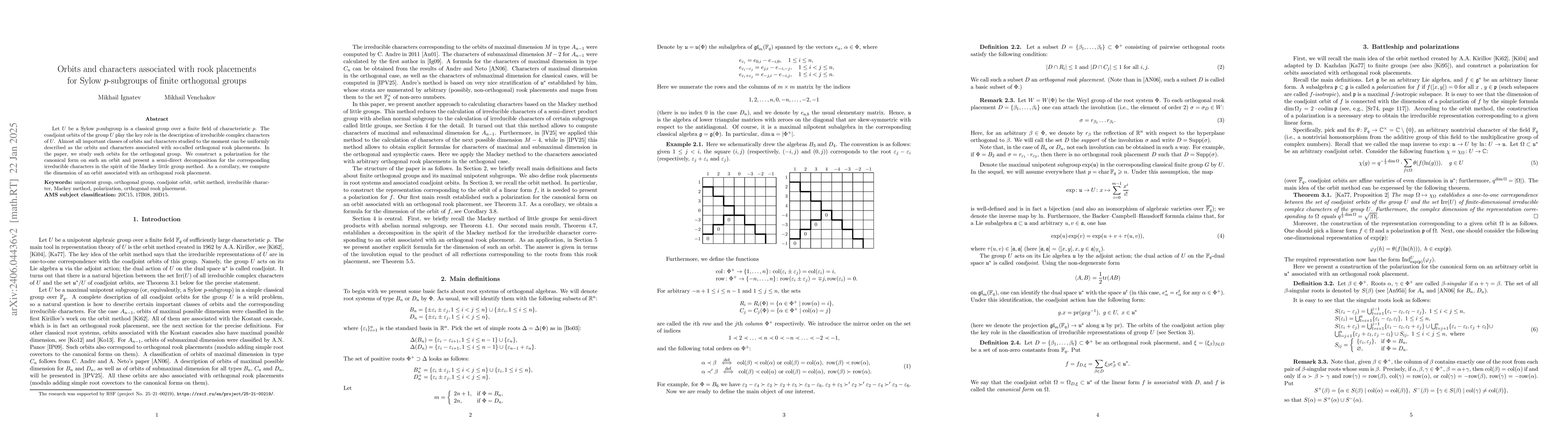 Let $U$ be a Sylow $p$-subgroup in a classical group over a finite field of characteristic $p$. The coadjoint orbits of the group $U$ play the key role in the description of irreducible complex characters of $U$. Almost all important classes of orbits and characters studied to the moment can be uniformly described as the orbits and characters associated with so-called orthogonal rook placements. In the paper, we study such orbits for the orthogonal group. We construct a polarization for the canonical form on such an orbit and present a semi-direct decomposition for the corresponding irreducible characters in the spirit of the Mackey little group method. As a corollary, we compute the dimension of an orbit associated with an orthogonal rook placement.