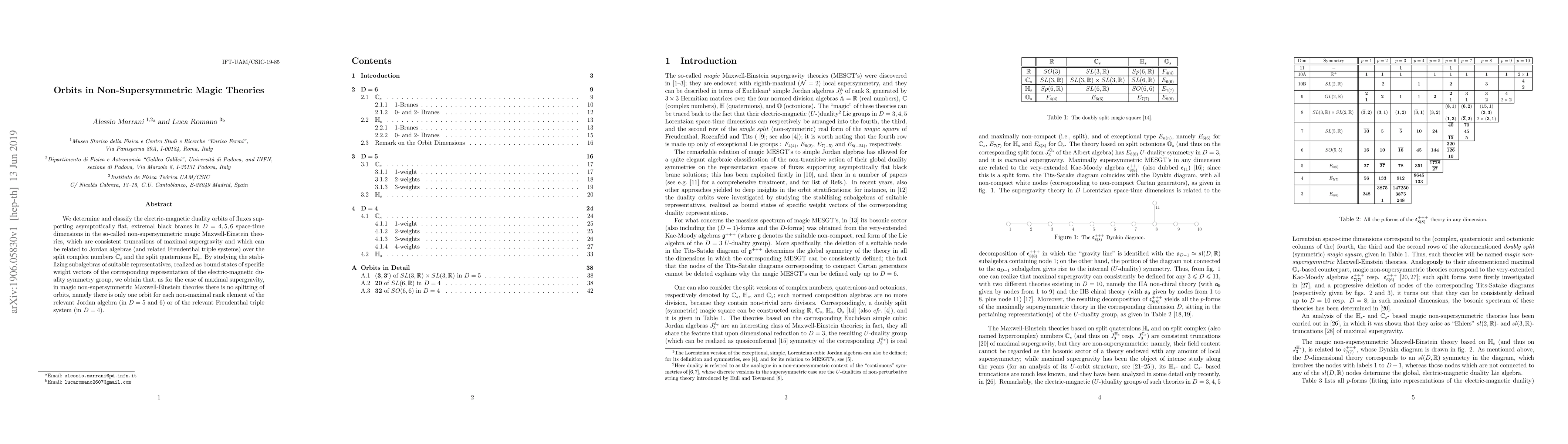 We determine and classify the electric-magnetic duality orbits of fluxes supporting asymptotically flat, extremal black branes in $D=4,5,6$ space-time dimensions in the so-called non-supersymmetric magic Maxwell-Einstein theories, which are consistent truncations of maximal supergravity and which can be related to Jordan algebras (and related Freudenthal triple systems) over the split complex numbers $\mathbb{C}_{s}$ and the split quaternions $\mathbb{H}_{s}$. By studying the stabilizing subalgebras of suitable representatives, realized as bound states of specific weight vectors of the corresponding representation of the electric-magnetic duality symmetry group, we obtain that, as for the case of maximal supergravity, in magic non-supersymmetric Maxwell-Einstein theories there is no splitting of orbits, namely there is only one orbit for each non-maximal rank element of the relevant Jordan algebra (in $D=5$ and $6$) or of the relevant Freudenthal triple system (in $D=4$).