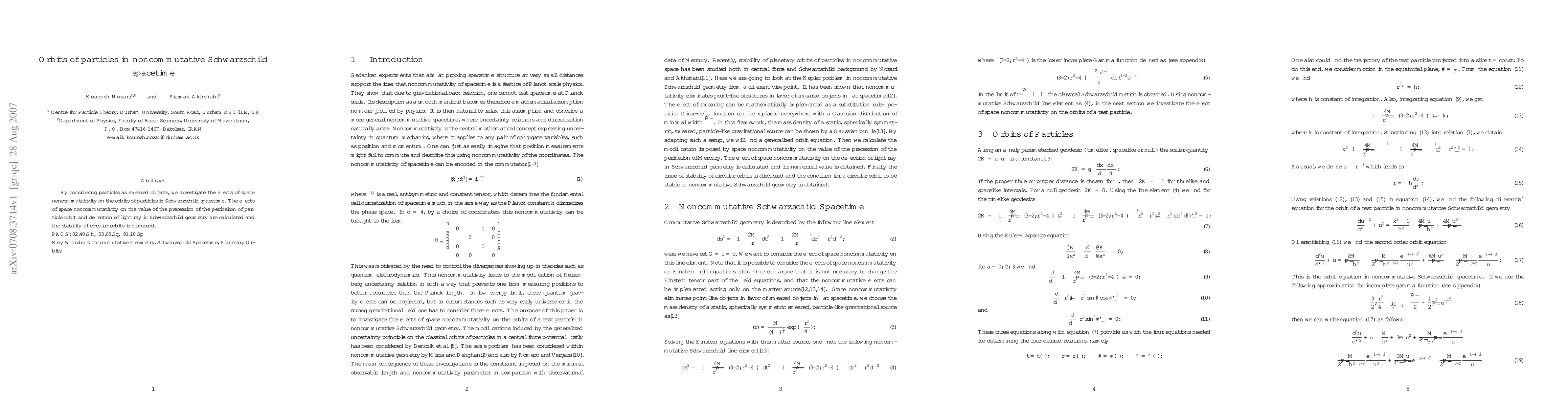 The paper presents a detailed analysis of particle orbits and light deflection in noncommutative Schwarzschild spacetime, deriving and simplifying the orbit equation, calculating extraprecession, and correcting the angle of light deflection due to space noncommutativity.