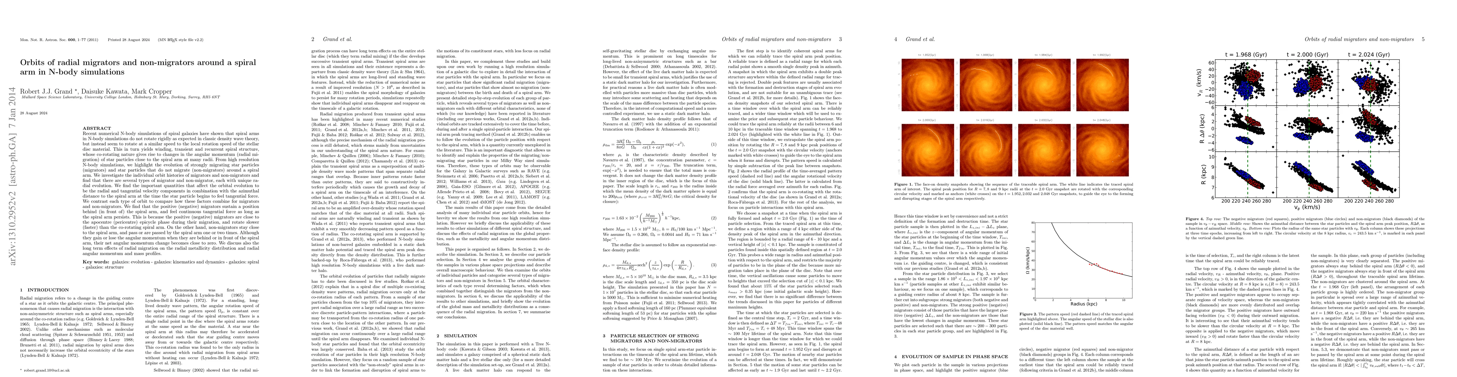 Recent numerical N-body simulations of spiral galaxies have shown that spiral arms in N-body simulations seem to rotate at a similar speed to the local rotation speed of the stellar disc material. This in turn yields winding, transient and recurrent spiral structure, whose co-rotating nature gives rise to changes in the angular momentum (radial migration) of star particles close to the spiral arm at many radii. From high resolution N-body simulations, we highlight the evolution of strongly migrating star particles (migrators) and star particles that do not migrate (non-migrators) around a spiral arm. We investigate the individual orbit histories of migrators and non-migrators and find that there are several types of migrator and non-migrator, each with unique radial evolution. We contrast each type of orbit to establish the reasons for the differences between them. We find that the positive (negative) migrators sustain a position behind (in front of) the spiral arm, and feel continuous tangential force as long as the spiral arm persists. On the other hand, non-migrators stay close to the spiral arm, and pass or are passed by the spiral arm one or two times. Although they gain or lose the angular momentum when they are behind or in front of the spiral arm, their net angular momentum change becomes close to zero. We discuss also the long term effects of radial migration on the radial metallicity distribution and radial angular momentum and mass profiles. [Abridged]