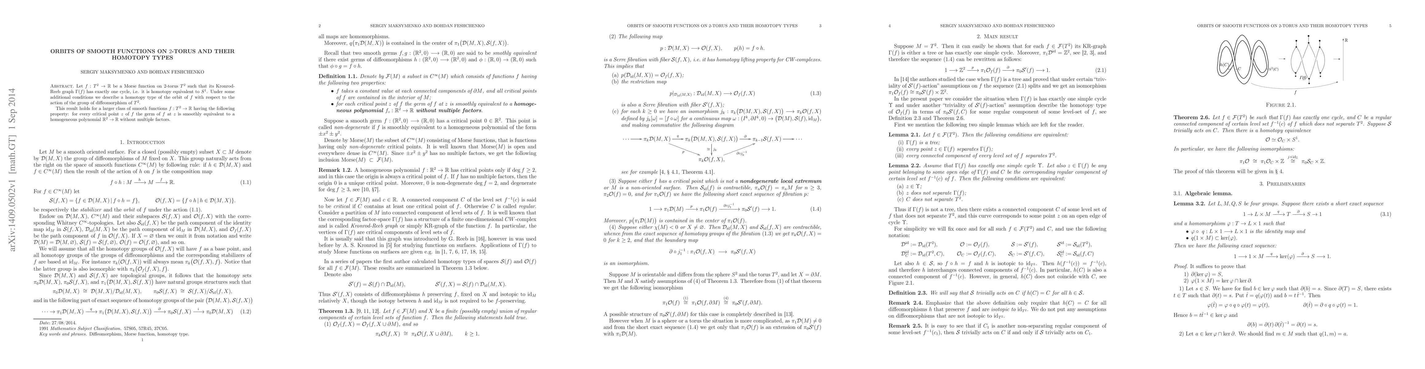 A study of Morse functions on a 2-torus reveals that under certain conditions, the orbits of these functions have specific homotopy types, which can be described in terms of a homogeneous polynomial.
