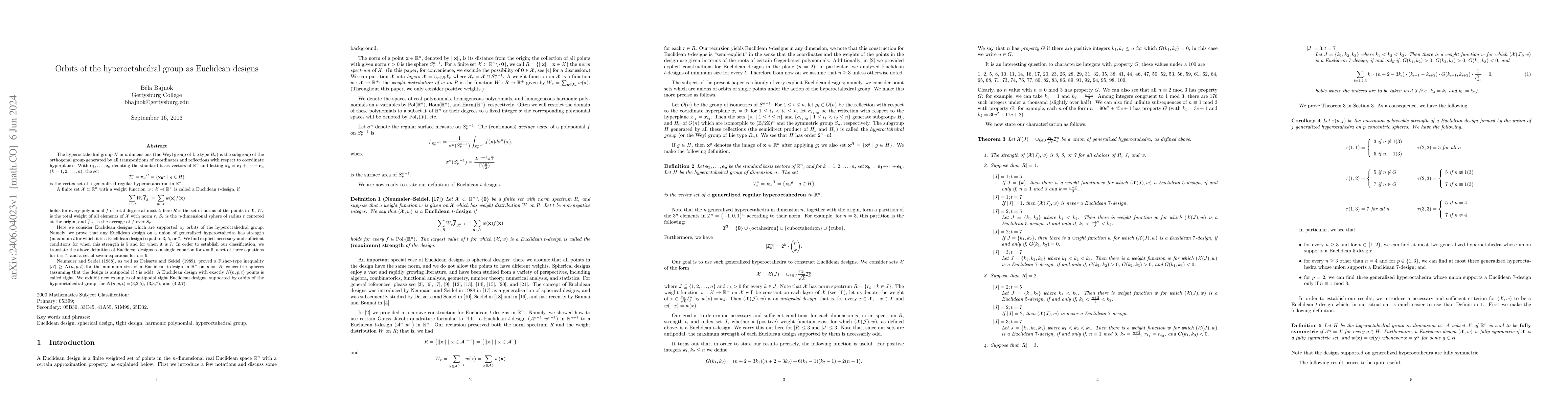 This paper investigates Euclidean designs supported by orbits of the hyperoctahedral group, proving that their strength is either 3, 5, or 7. It identifies necessary and sufficient conditions for strengths 5 and 7 and presents new examples of antipodal tight Euclidean designs for specific dimensions and degree parameters.