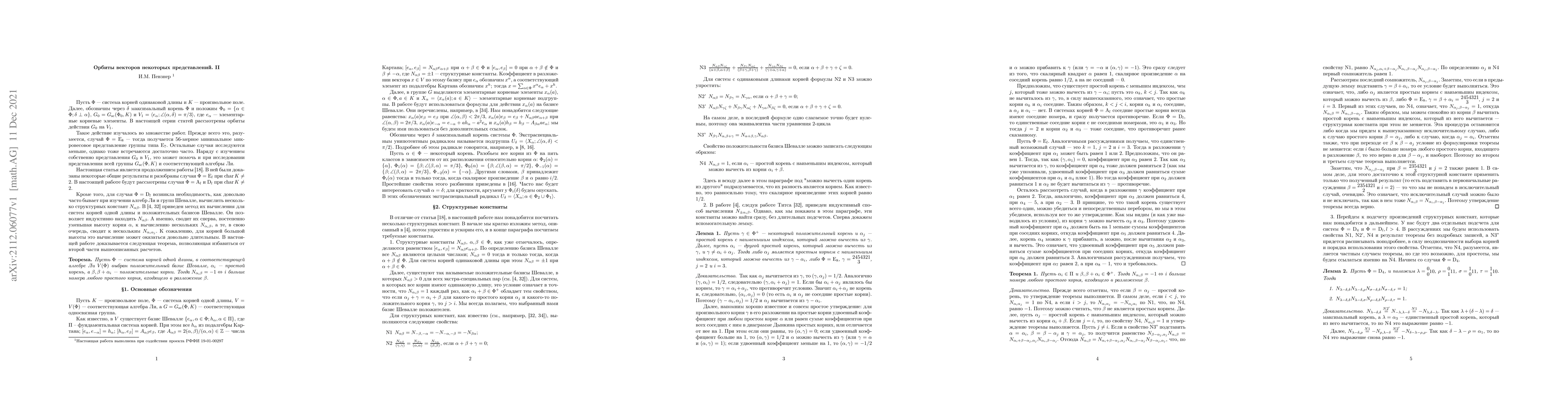 Let $\Phi$ be a root system of type $A_l$ or $D_l$. Let $K$ be a field of characteristic not $2$. Let $\delta$ be the maximal root of $\Phi$ and set $\Phi_0 = \{\alpha\in\Phi; \delta\perp\alpha\}$. We describe orbits of the group $G_{\text{\rm sc}}(\Phi_0, K)$ acting on the set $\langle e_\alpha; \angle(\alpha, \delta) = \pi/3\rangle$.