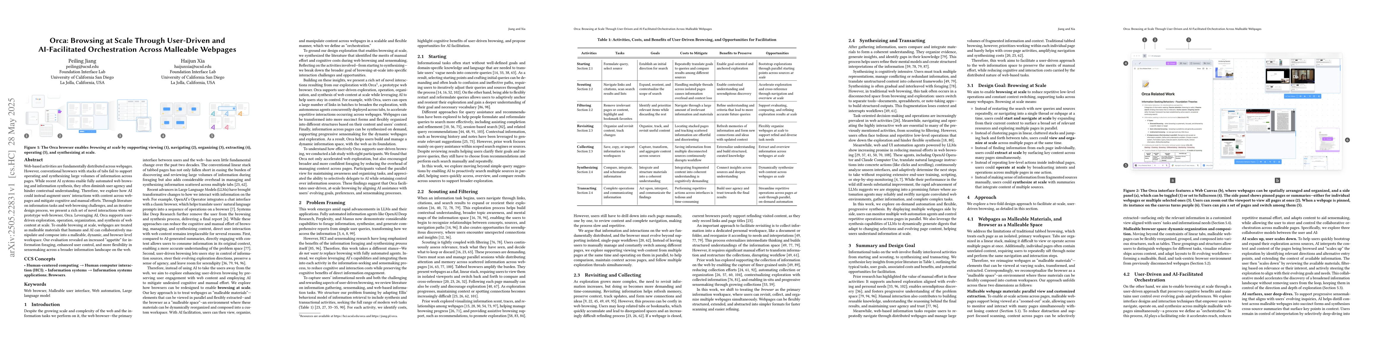 Orca introduces a novel approach to web browsing by treating webpages as malleable materials that humans and AI can collaboratively manipulate and compose into a dynamic, browser-level workspace.