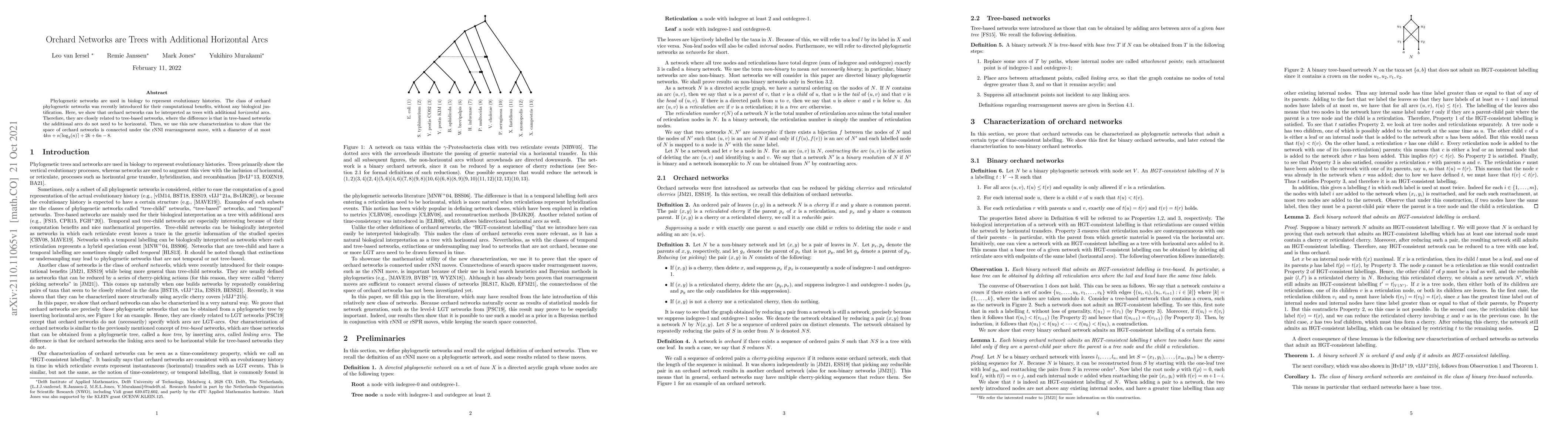 Orchard phylogenetic networks, a recently introduced computational class, can be interpreted as trees augmented with horizontal arcs. This new characterization reveals their close relation to tree-based networks and demonstrates that the space of orchard networks is connected under the rNNI rearrangement move with a specific diameter.