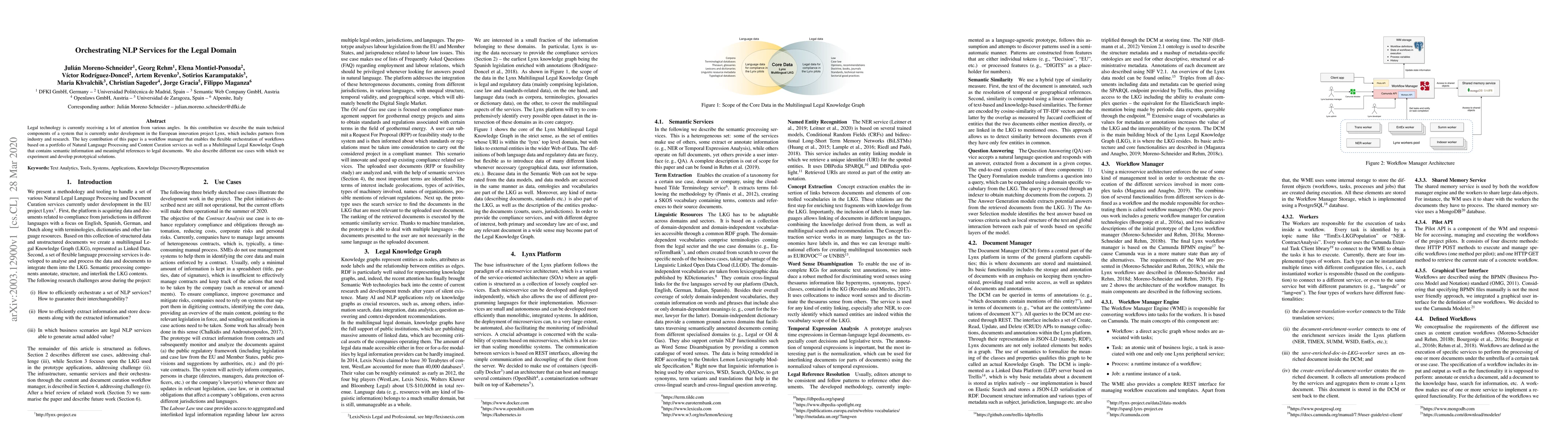 Legal technology is currently receiving a lot of attention from various angles. In this contribution we describe the main technical components of a system that is currently under development in the European innovation project Lynx, which includes partners from industry and research. The key contribution of this paper is a workflow manager that enables the flexible orchestration of workflows based on a portfolio of Natural Language Processing and Content Curation services as well as a Multilingual Legal Knowledge Graph that contains semantic information and meaningful references to legal documents. We also describe different use cases with which we experiment and develop prototypical solutions.