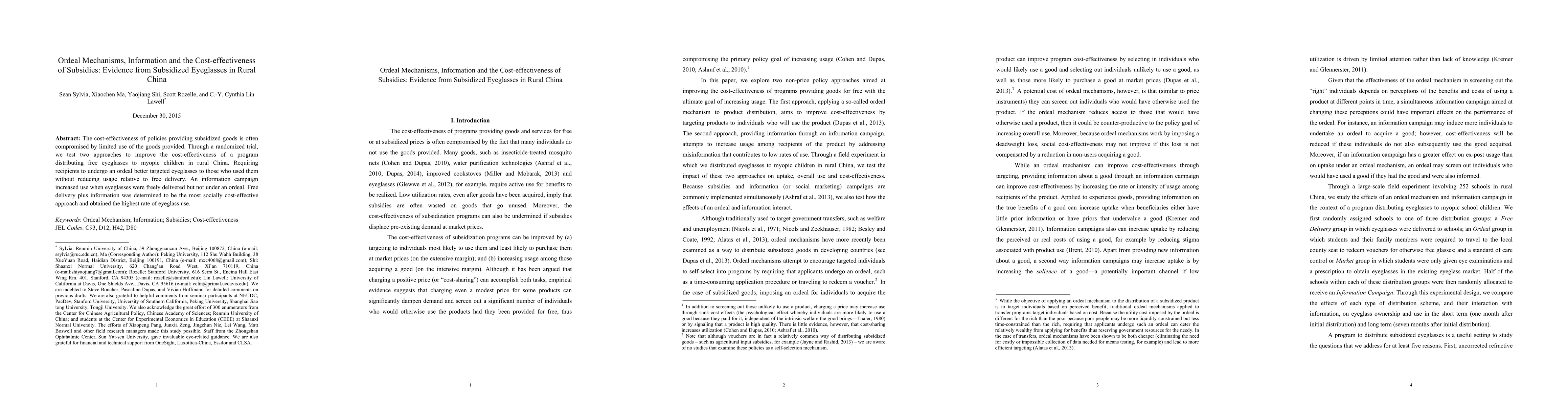 The cost-effectiveness of policies providing subsidized goods is often compromised by limited use of the goods provided. Through a randomized trial, we test two approaches to improve the cost-effectiveness of a program distributing free eyeglasses to myopic children in rural China. Requiring recipients to undergo an ordeal better targeted eyeglasses to those who used them without reducing usage relative to free delivery. An information campaign increased use when eyeglasses were freely delivered but not under an ordeal. Free delivery plus information was determined to be the most socially cost-effective approach and obtained the highest rate of eyeglass use.