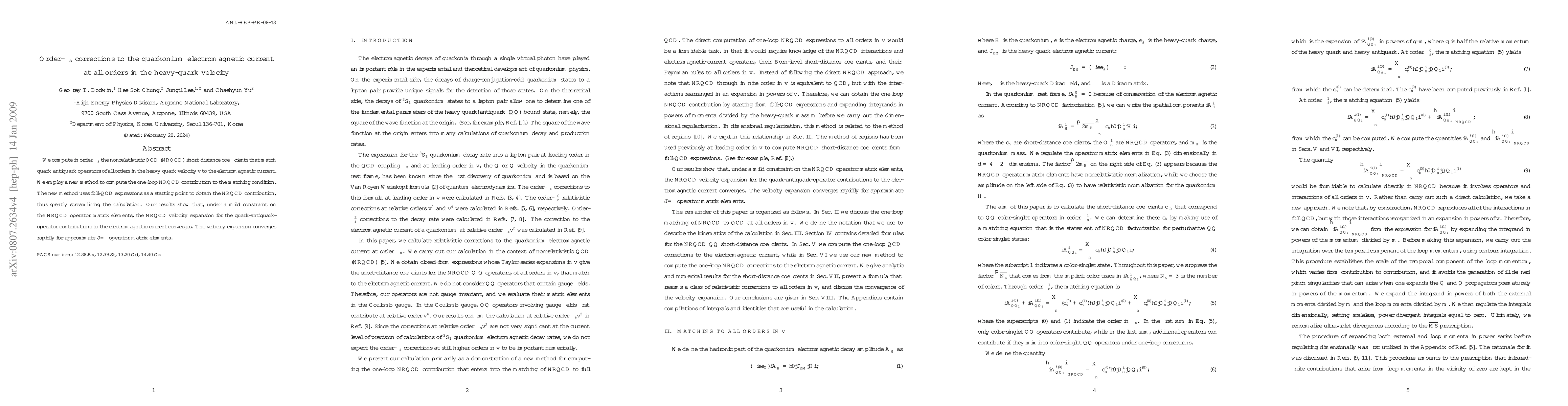 We compute in order alpha_s the nonrelativistic QCD (NRQCD) short-distance coefficients that match quark-antiquark operators of all orders in the heavy-quark velocity v to the electromagnetic current. We employ a new method to compute the one-loop NRQCD contribution to the matching condition. The new method uses full-QCD expressions as a starting point to obtain the NRQCD contribution, thus greatly streamlining the calculation. Our results show that, under a mild constraint on the NRQCD operator matrix elements, the NRQCD velocity expansion for the quark-antiquark-operator contributions to the electromagnetic current converges. The velocity expansion converges rapidly for approximate J/psi operator matrix elements.