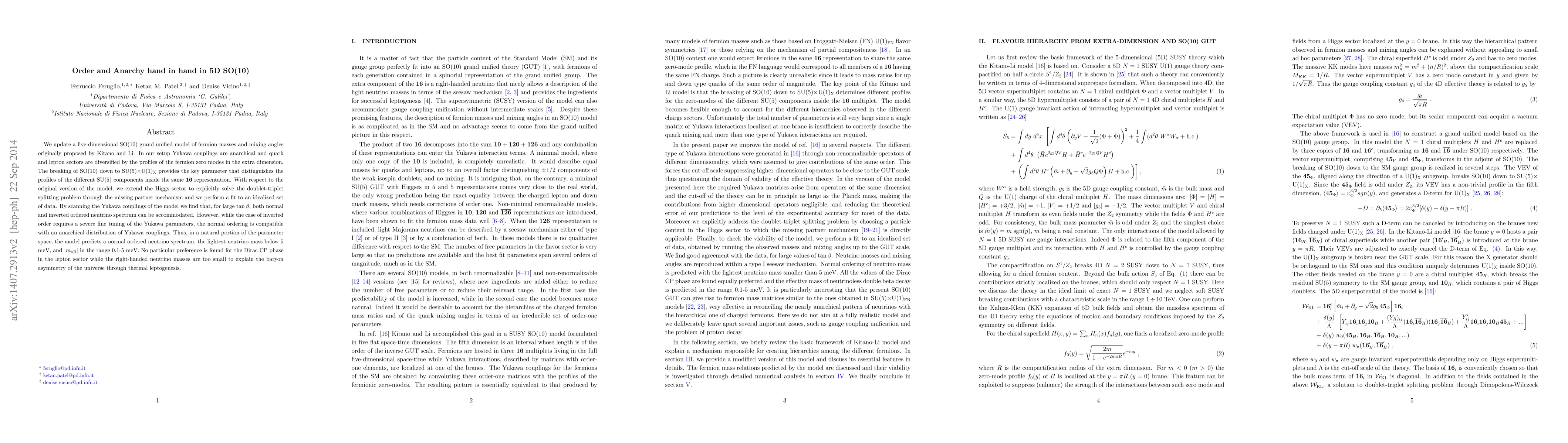 We update a five-dimensional SO(10) grand unified model of fermion masses and mixing angles originally proposed by Kitano and Li. In our setup Yukawa couplings are anarchical and quark and lepton sectors are diversified by the profiles of the fermion zero modes in the extra dimension. The breaking of SO(10) down to SU(5) \times U(1)_X provides the key parameter that distinguishes the profiles of the different SU(5) components inside the same 16 representation. With respect to the original version of the model, we extend the Higgs sector to explicitly solve the doublet-triplet splitting problem through the missing partner mechanism and we perform a fit to an idealized set of data. By scanning the Yukawa couplings of the model we find that, for large tan\beta, both normal and inverted ordered neutrino spectrum can be accommodated. However, while the case of inverted order requires a severe fine tuning of the Yukawa parameters, the normal ordering is compatible with an anarchical distribution of Yukawa couplings. Thus, in a natural portion of the parameter space, the model predicts a normal ordered neutrino spectrum, the lightest neutrino mass below 5 meV, and |m_{\beta\beta}| in the range 0.1-5 meV. No particular preference is found for the Dirac CP phase in the lepton sector while the right-handed neutrino masses are too small to explain the baryon asymmetry of the universe through thermal leptogenesis.