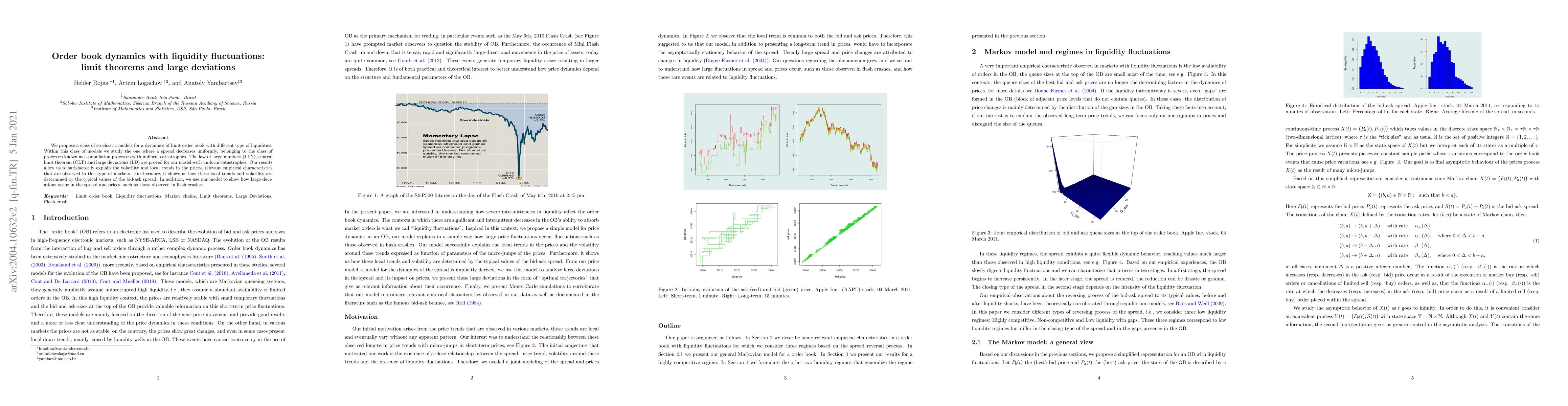 We propose a class of stochastic models for a dynamics of limit order book with different type of liquidities. Within this class of models we study the one where a spread decreases uniformly, belonging to the class of processes known as a population processes with uniform catastrophes. The law of large numbers (LLN), central limit theorem (CLT) and large deviations (LD) are proved for our model with uniform catastrophes. Our results allow us to satisfactorily explain the volatility and local trends in the prices, relevant empirical characteristics that are observed in this type of markets. Furthermore, it shows us how these local trends and volatility are determined by the typical values of the bid-ask spread. In addition, we use our model to show how large deviations occur in the spread and prices, such as those observed in flash crashes.