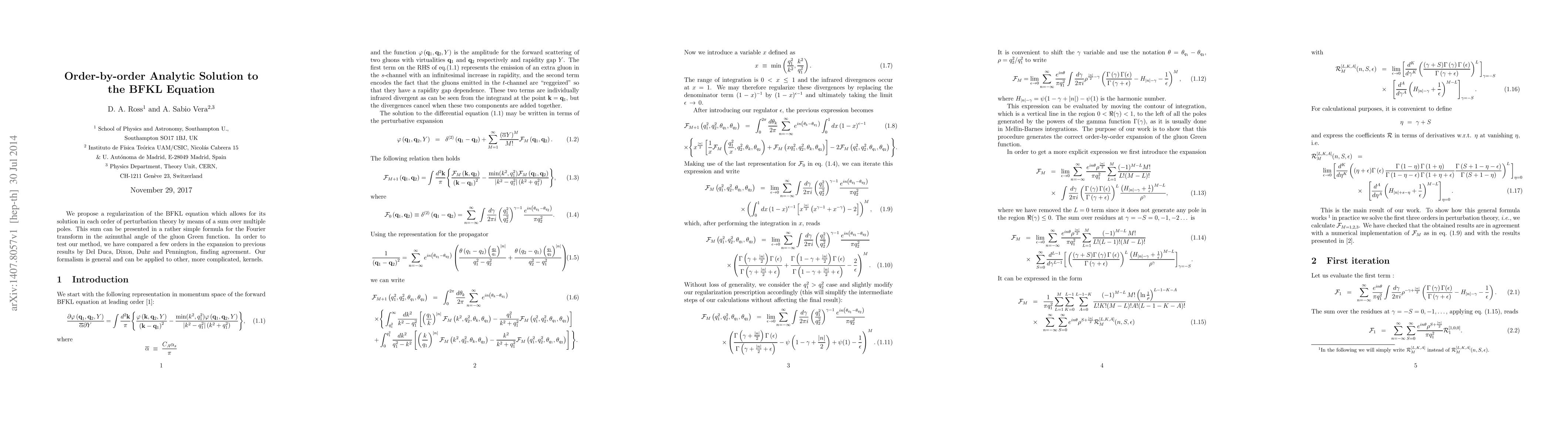 Researchers propose a new method to solve the BFKL equation, allowing for a sum over multiple poles that can be presented in a simple formula, enabling agreement with previous results for a few orders.