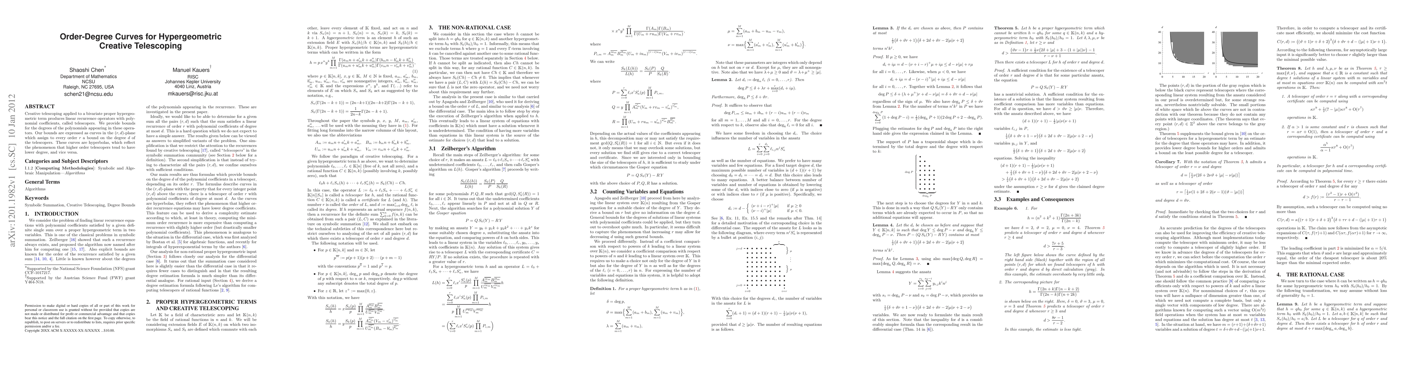 Creative telescoping applied to a bivariate proper hypergeometric term produces linear recurrence operators with polynomial coefficients, called telescopers. We provide bounds for the degrees of the polynomials appearing in these operators. Our bounds are expressed as curves in the (r,d)-plane which assign to every order r a bound on the degree d of the telescopers. These curves are hyperbolas, which reflect the phenomenon that higher order telescopers tend to have lower degree, and vice versa.