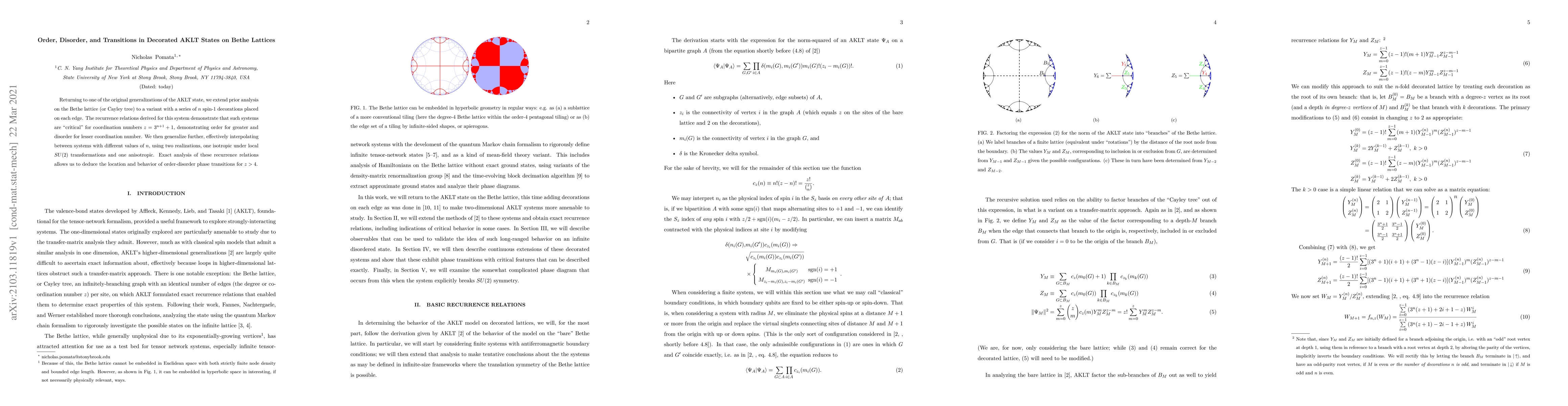 Returning to one of the original generalizations of the AKLT state, we extend prior analysis on the Bethe lattice (or Cayley tree) to a variant with a series of $n$ spin-1 decorations placed on each edge. The recurrence relations derived for this system demonstrate that such systems are critical for coordination numbers $z=3^{n+1}$, demonstrating order for greater and disorder for lesser coordination number. We then generalize further, effectively interpolating between systems with different values of $n$, using two realizations, one isotropic under local $SU(2)$ transformations and one anisotropic. Exact analysis of these recurrence relations allows us to deduce the location and behavior of order-disorder phase transitions for $z>4$.