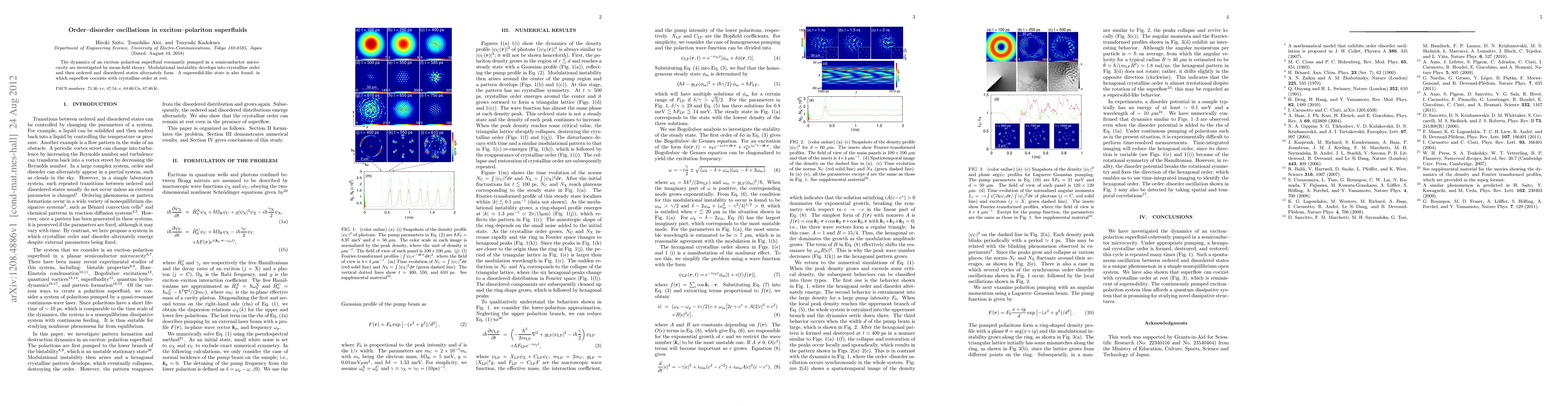 The dynamics of an exciton-polariton superfluid resonantly pumped in a semiconductor microcavity are investigated by mean-field theory. Modulational instability develops into crystalline order and then ordered and disordered states alternately form. A supersolid-like state is also found, in which superflow coexists with crystalline order at rest.