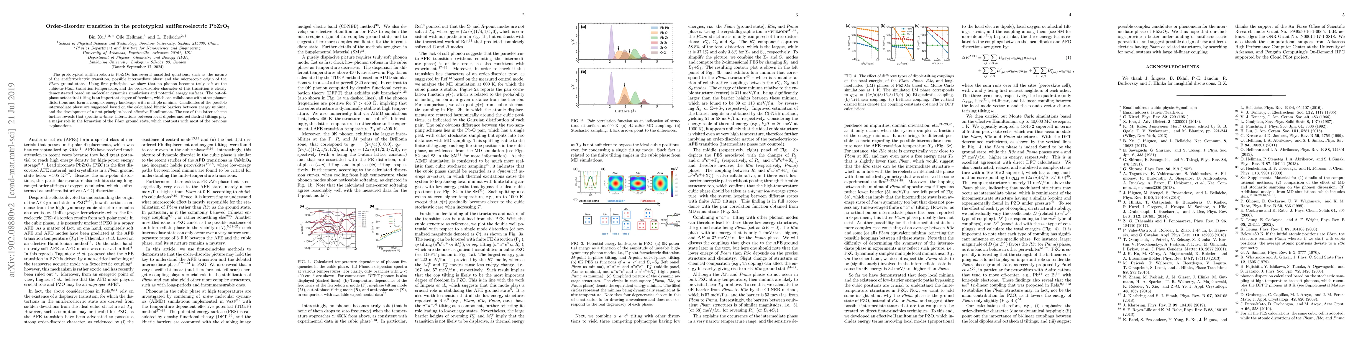 This study reveals that the cubic-to-Pbam transition in PbZrO$_3$ is an order-disorder transition without a phonon softening, identified through first principles and molecular dynamics. The research suggests that bi-linear interactions between local dipoles and octahedral tiltings are crucial for the Pbam ground state formation, differing from prior explanations.