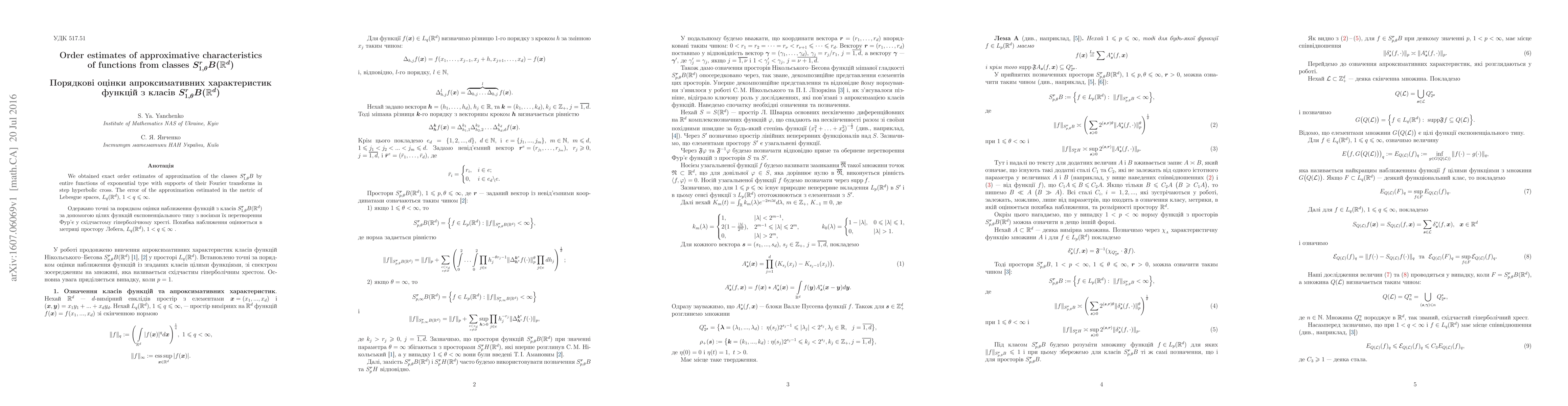 supports of their Fourier transforms in step hyperbolic cross. The error of the