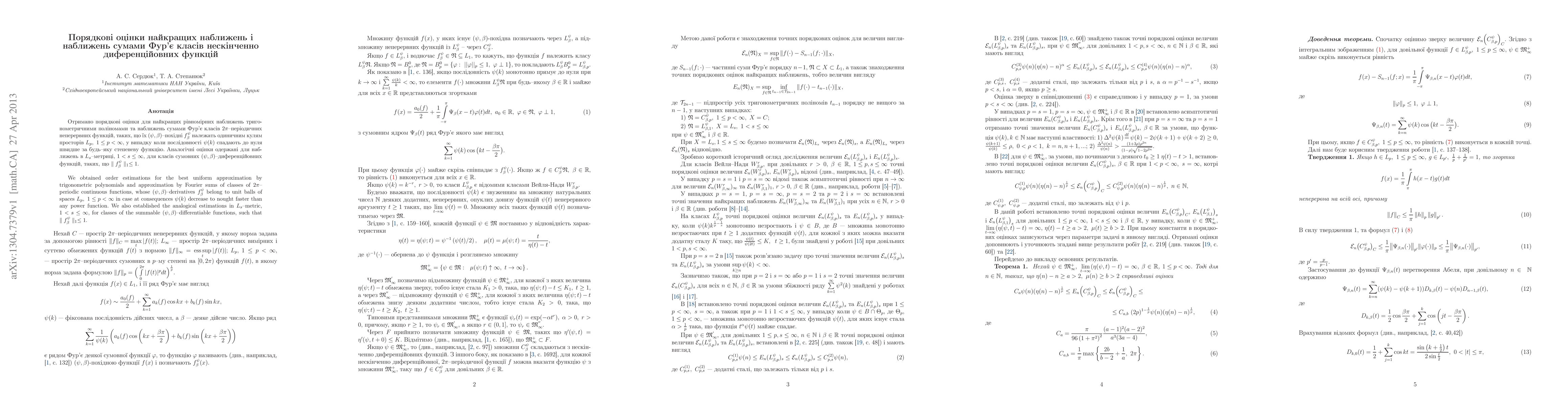This paper provides order estimations for the best uniform approximations by trigonometric polynomials and Fourier sums for classes of infinitely differentiable functions, focusing on $(\psi,\beta)$-derivatives in $L_{p}$ spaces. It also establishes analogous estimations in $L_{s}$-metric for summable $(\psi,\beta)$-differentiable functions.