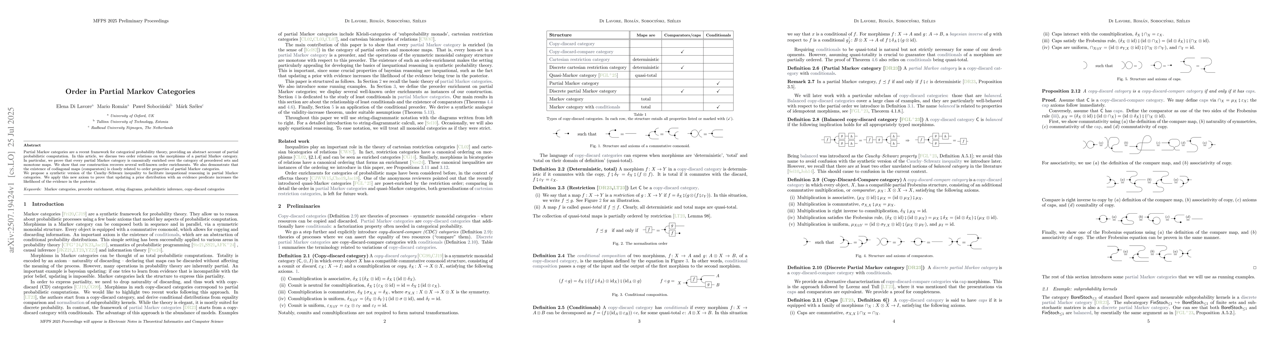 Partial Markov categories are a recent framework for categorical probability theory, providing an abstract account of partial probabilistic computation. In this article, we discuss two order relations on the morphisms of a partial Markov category. In particular, we prove that every partial Markov category is canonically enriched over the category of preordered sets and monotone maps. We show that our construction recovers several well-known order enrichments. We also demonstrate that the existence of codiagonal maps (comparators) is closely related to order properties of partial Markov categories. We propose a synthetic version of the Cauchy-Schwarz inequality to facilitate inequational reasoning in partial Markov categories. We apply this new axiom to prove that updating a prior distribution with an evidence predicate increases the likelihood of the evidence in the posterior.