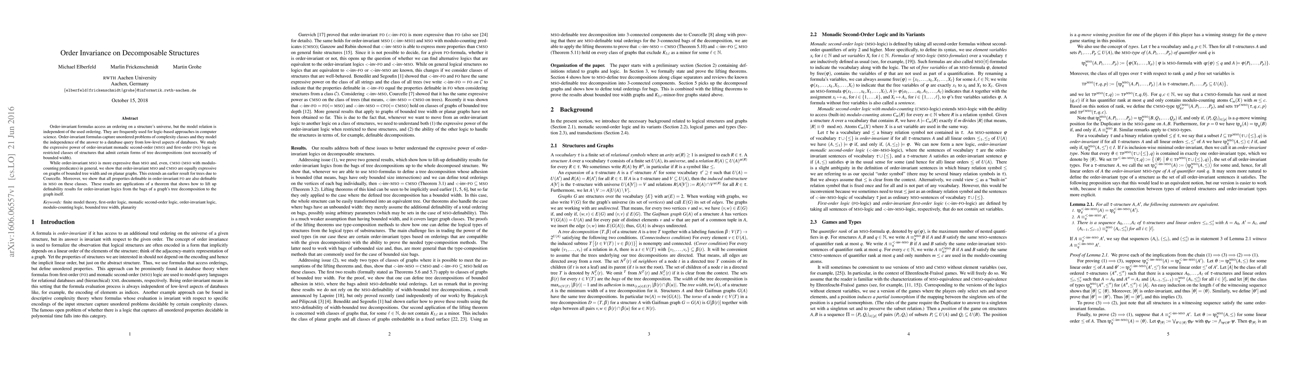 This paper investigates the expressive power of order-invariant logic on decomposable structures, showing that order-invariant monadic second-order logic is equally expressive as modulo-counting second-order logic on certain classes of graphs.