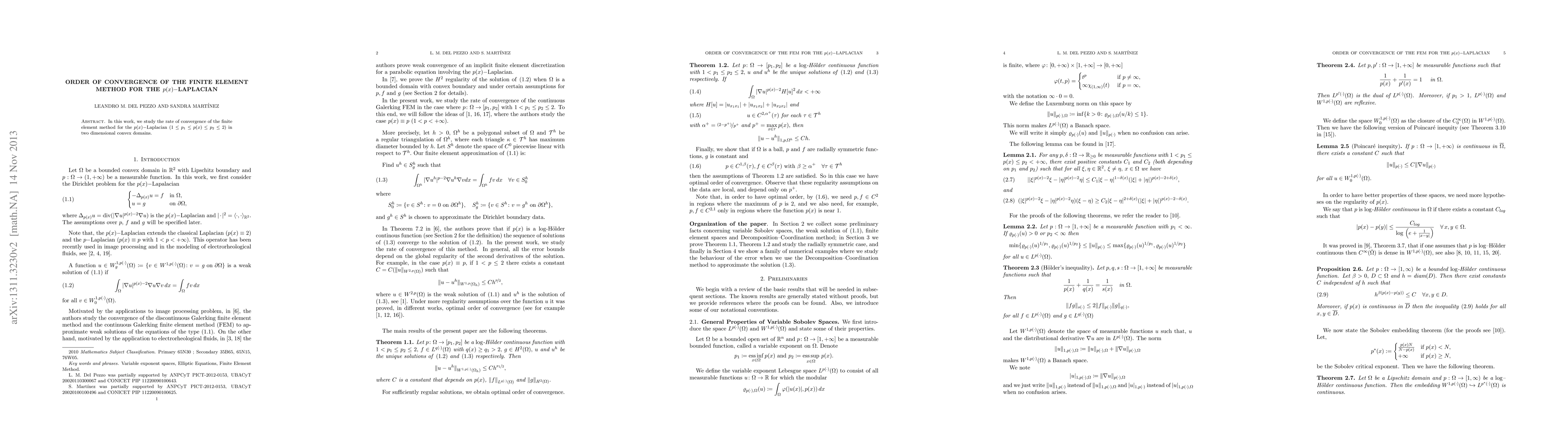 This paper investigates the convergence rate of the finite element method applied to the $p(x)$-Laplacian in two-dimensional convex domains, focusing on the range $1< p_1\leq p(x)\leq p_2\leq 2$. The study provides insights into the order of convergence for this specific type of non-linear elliptic problem.