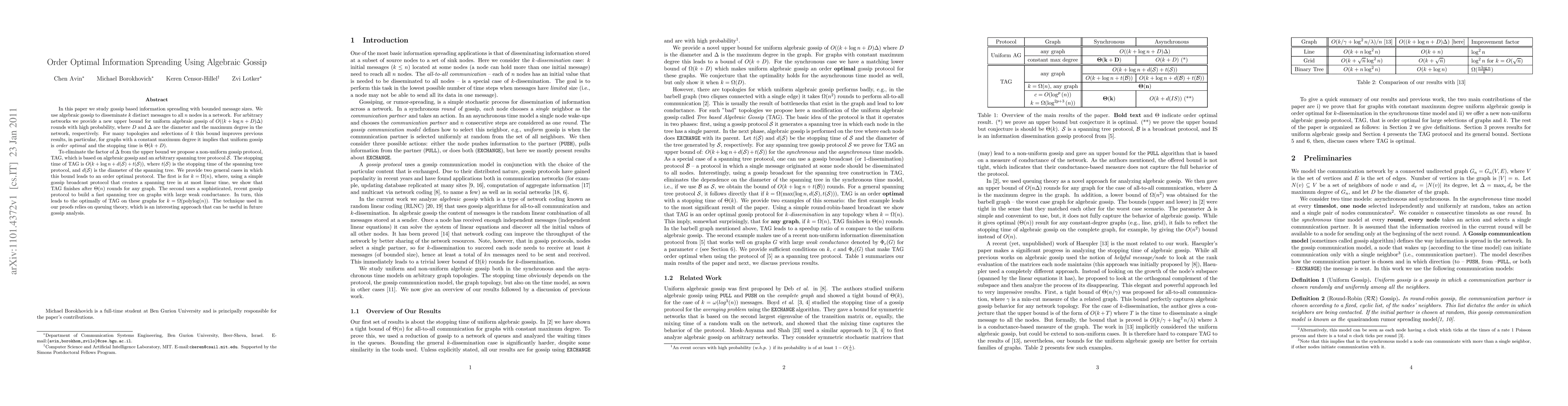 This paper investigates gossip-based information spreading with bounded message sizes, providing an upper bound of $O((k+\log n + D)\Delta)$ rounds for uniform algebraic gossip. It introduces a non-uniform gossip protocol, TAG, which eliminates the $\Delta$ factor and achieves order optimal stopping times for specific cases, notably for large $k$ and graphs with large weak conductance.