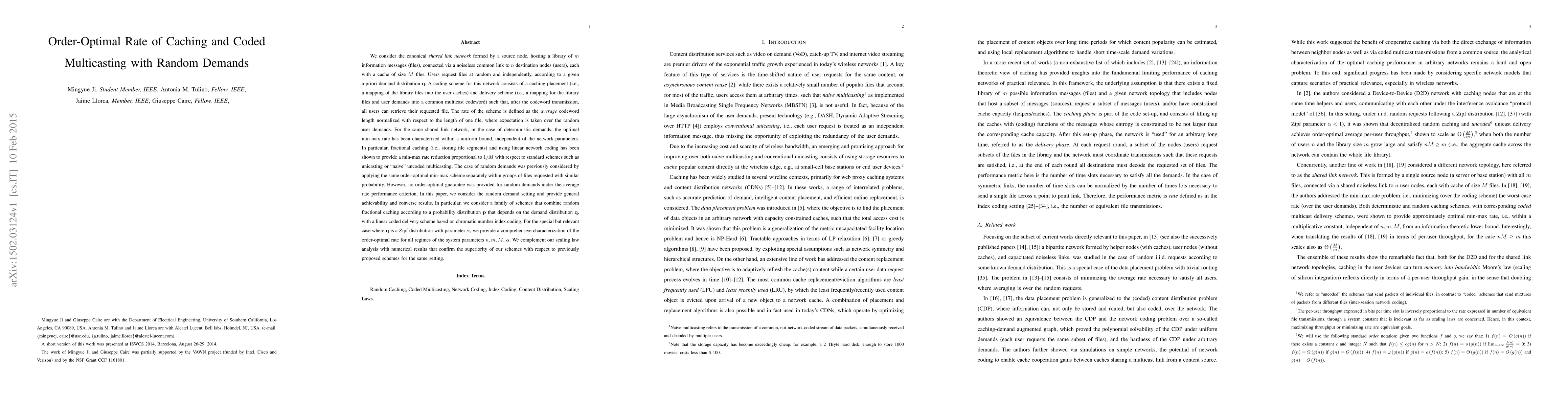 This paper explores the optimal rate of caching and coded multicasting in a shared link network with random user demands. It provides general achievability and converse results for schemes combining random fractional caching and linear network coding to achieve an order-optimal average rate performance.