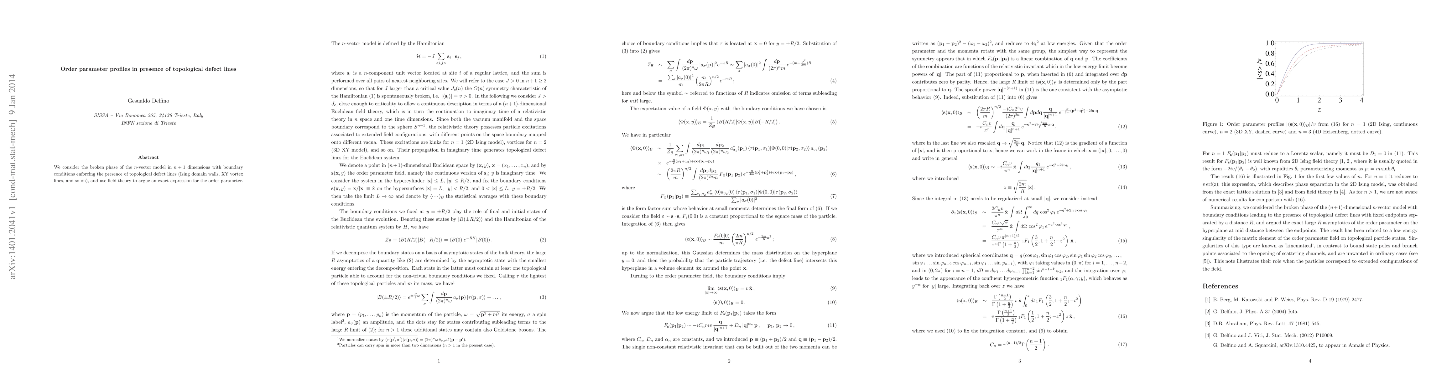 We consider the broken phase of the n-vector model in n+1 dimensions with boundary conditions enforcing the presence of topological defect lines (Ising domain walls, XY vortex lines, and so on), and use field theory to argue an exact expression for the order parameter.