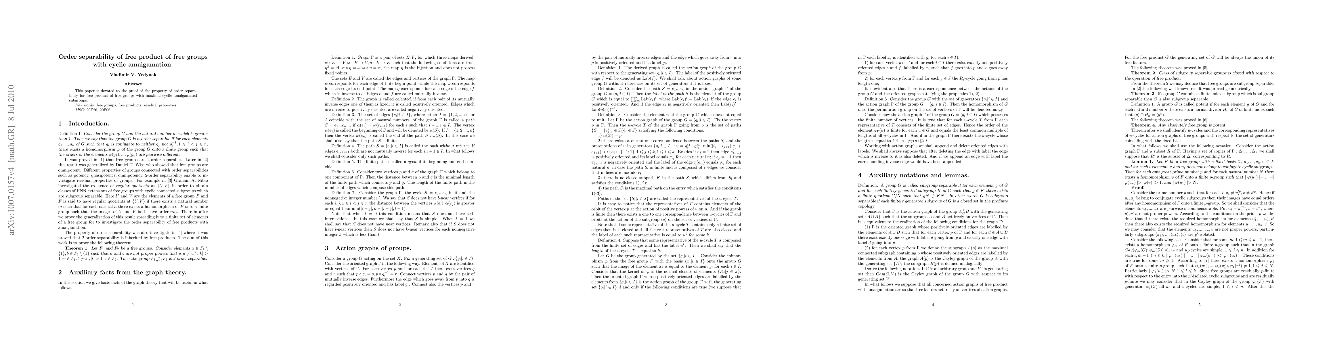 This paper is devoted to the proof of the property of order separability for free product of free groups with maximal cyclic amalgamated subgroups.