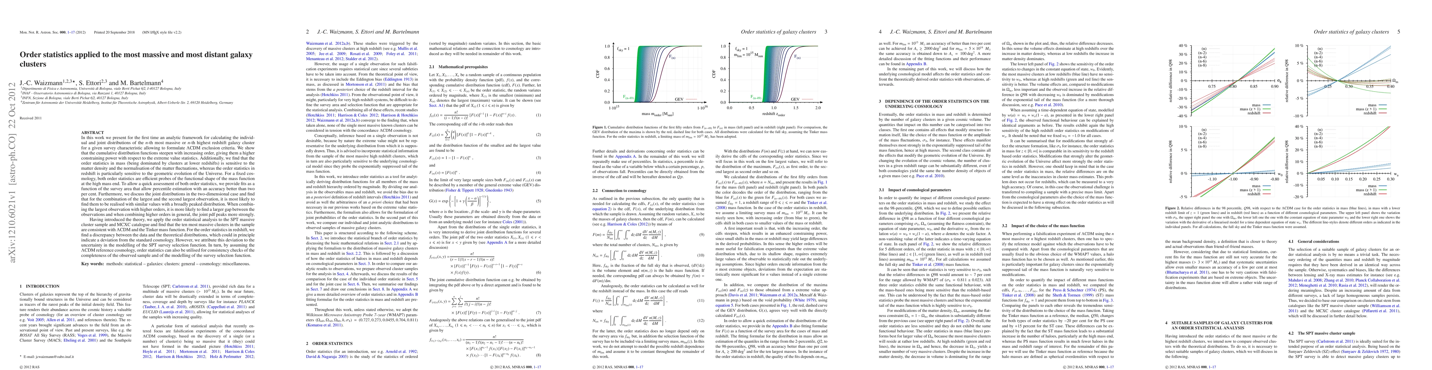 This paper develops an analytic framework for calculating the distributions of the most massive and highest redshift galaxy clusters, showing that order statistics provide a powerful tool for constraining extreme value statistics. The study finds that order statistics in mass and redshift are sensitive to different cosmological parameters and can be used to probe the mass function's shape at high masses. The analysis applied to observed cluster samples confirms consistency with LCDM models and aids in assessing survey completeness and selection function modeling.