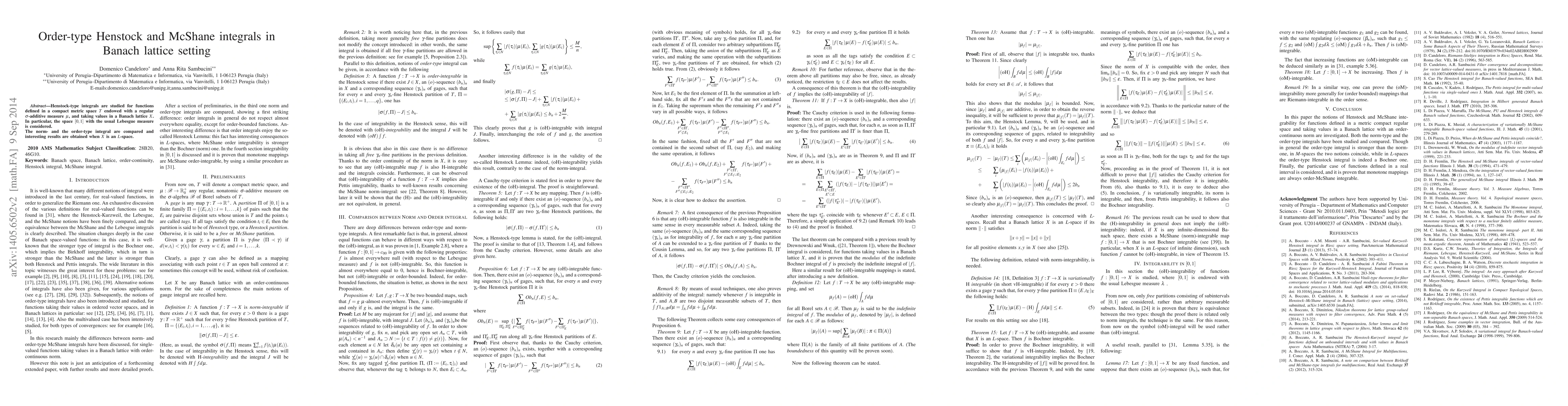 We study Henstock-type integrals for functions defined in a compact metric space $T$ endowed with a regular $\sigma$-additive measure $\mu$, and taking values in a Banach lattice $X$. In particular, the space $[0,1]$ with the usual Lebesgue measure is considered.
