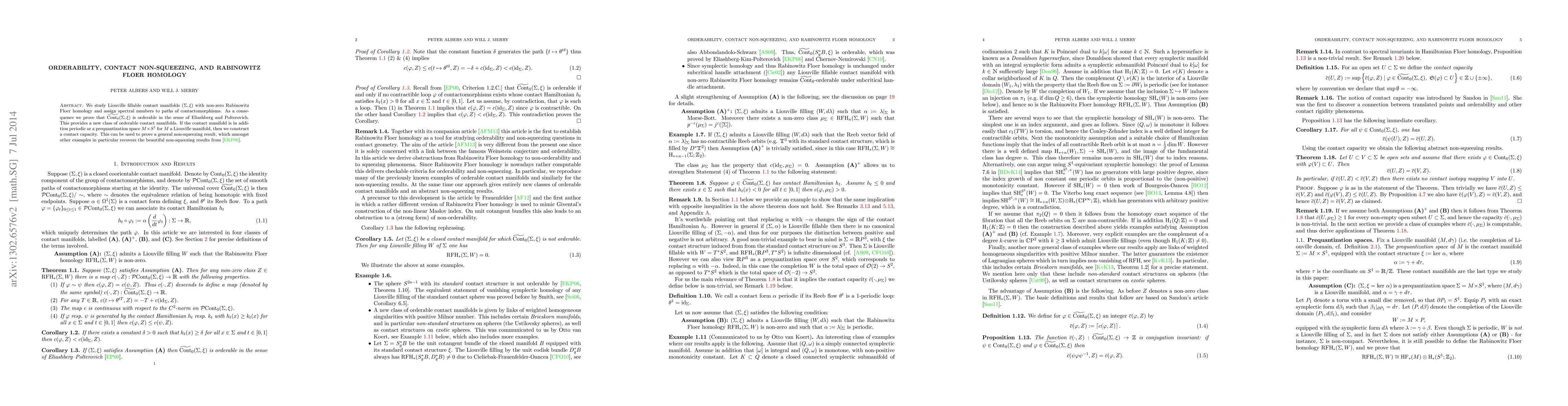 This paper explores Liouville fillable contact manifolds with non-zero Rabinowitz Floer homology, proving that their contactomorphism groups are orderable. It also constructs a contact capacity for periodic or prequantization space manifolds, leading to a general non-squeezing theorem that includes the results from [EKP06].