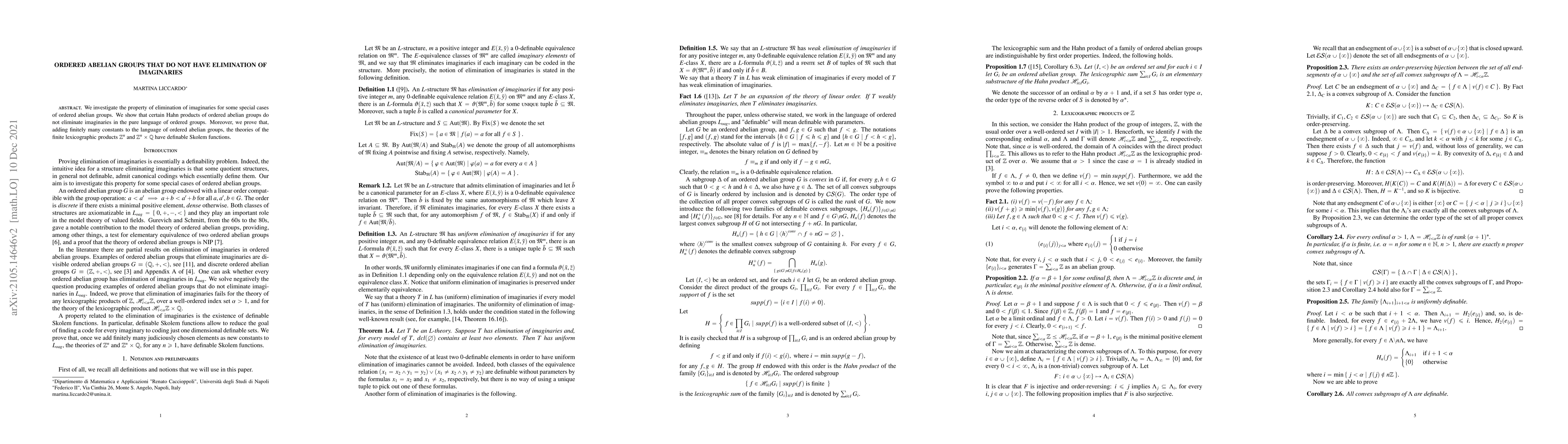 This paper explores ordered abelian groups without elimination of imaginaries, demonstrating that certain Hahn products fail to eliminate imaginaries in their pure language. Additionally, it proves that finite lexicographic products of $\mathbb{Z}^n$ and $\mathbb{Z}^n \times \mathbb{Q}$ possess definable Skolem functions when finitely many constants are added to their language.