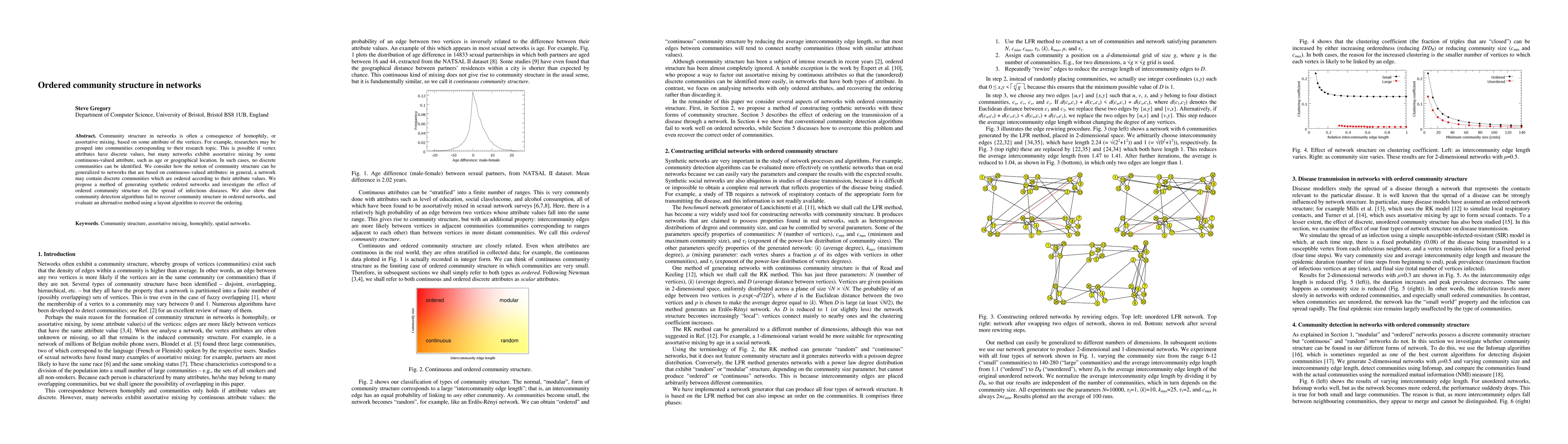 This paper explores the concept of ordered community structure in networks based on continuous-valued attributes, proposing a method to generate synthetic ordered networks and examining its impact on disease spread. It also highlights the failure of traditional community detection algorithms in such networks and introduces an alternative layout-based method for recovering the ordering.