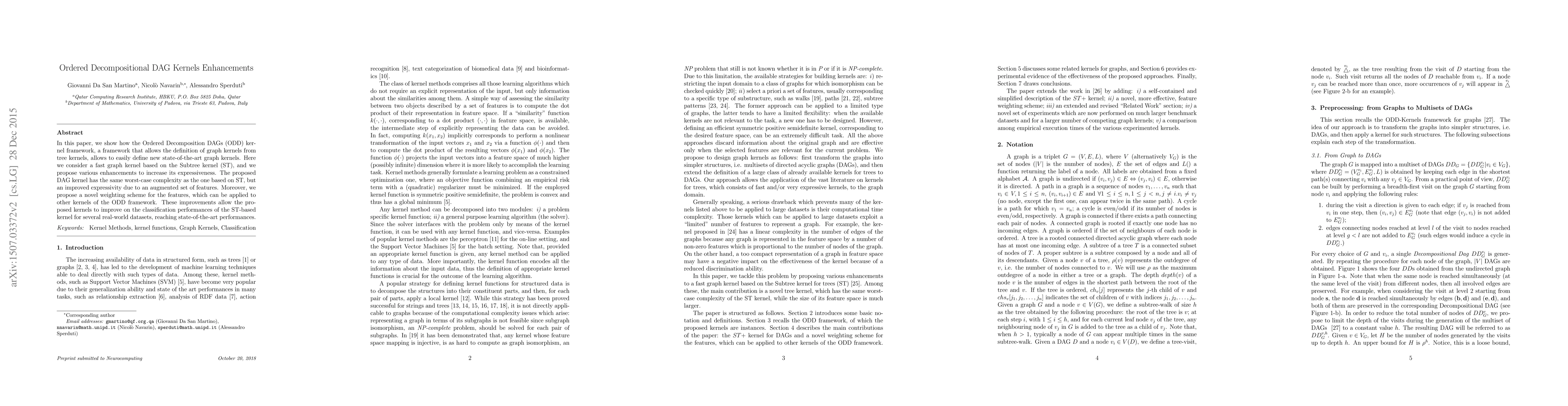 This paper enhances the Ordered Decomposition DAG (ODD) kernel framework by introducing a fast Subtree kernel-based DAG kernel with improved expressiveness and a novel weighting scheme. The enhancements lead to state-of-the-art classification performance on various real-world datasets.