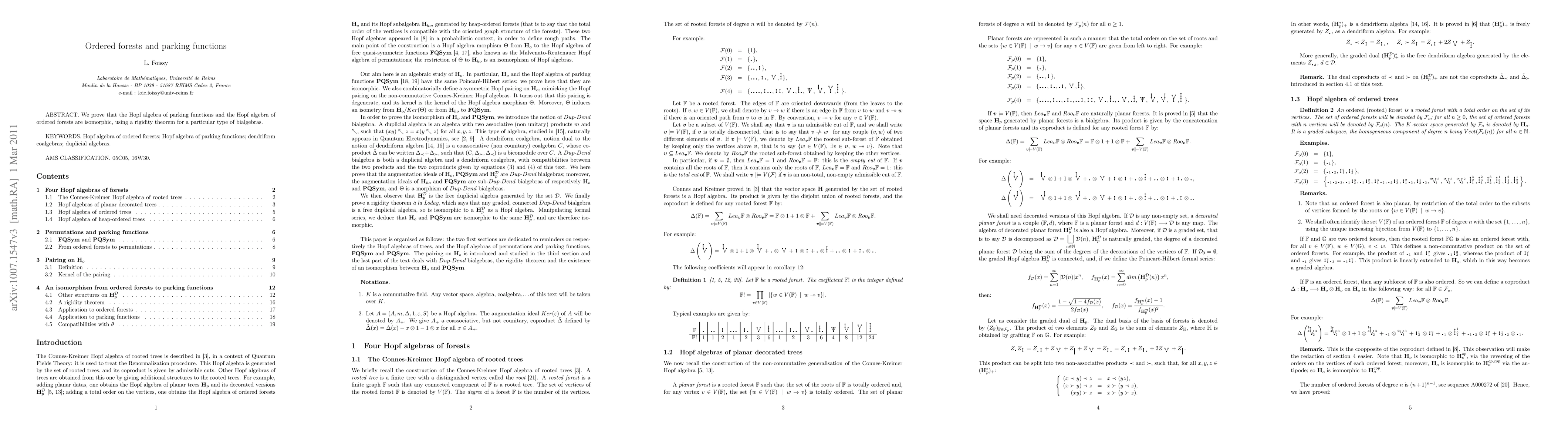 We prove that the Hopf algebra of parking functions and the Hopf algebra of ordered forests are isomorphic, using a rigidity theorem for a particular type of bialgebras.
