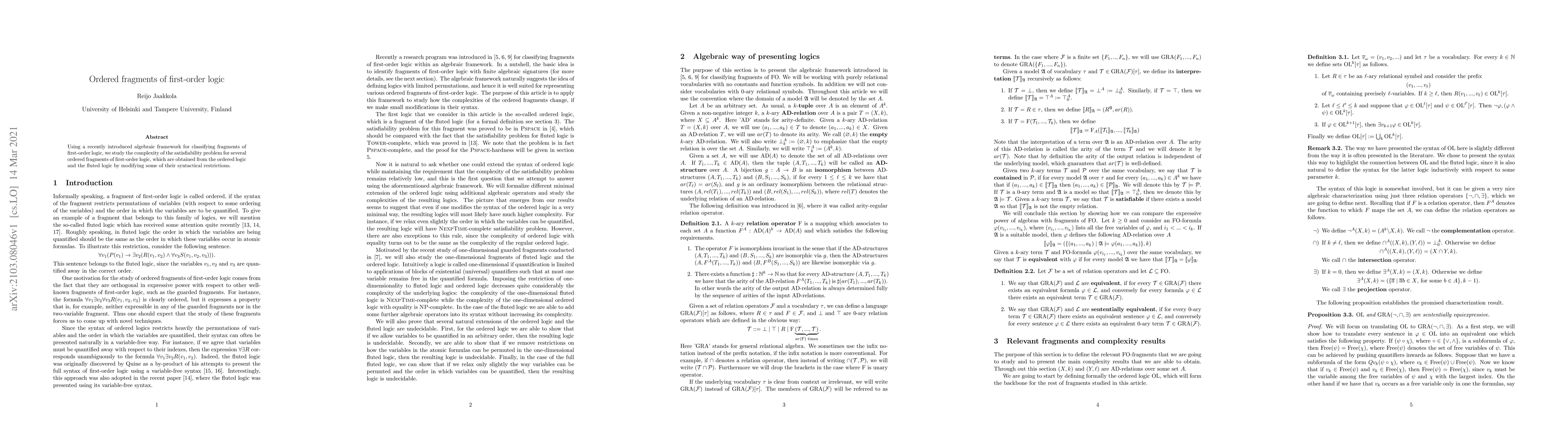 This paper explores the complexity of satisfiability problems for ordered fragments of first-order logic, employing an algebraic classification framework, and examines modifications of ordered and fluted logic to derive these fragments.