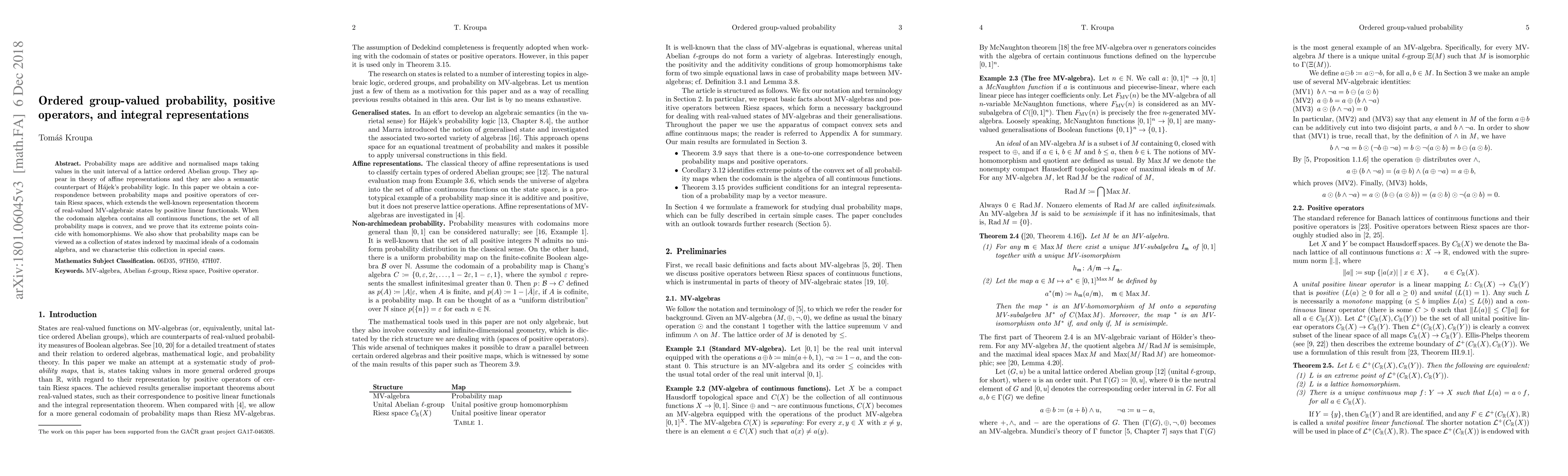 Probability maps are additive and normalised maps taking values in the unit interval of a lattice ordered Abelian group. They appear in theory of affine representations and they are also a semantic counterpart of Hajek's probability logic. In this paper we obtain a correspondence between probability maps and positive operators between certain Riesz spaces, which extends the well-known representation theorem of real-valued MV-algebraic states by positive linear functionals. When the codomain algebra contains all continuous functions, the set of all probability maps is convex, and we prove that its extreme points coincide with homomorphisms. We also show that probability maps can be viewed as a collection of states indexed by maximal ideals of a codomain algebra and we characterise this collection in special cases.