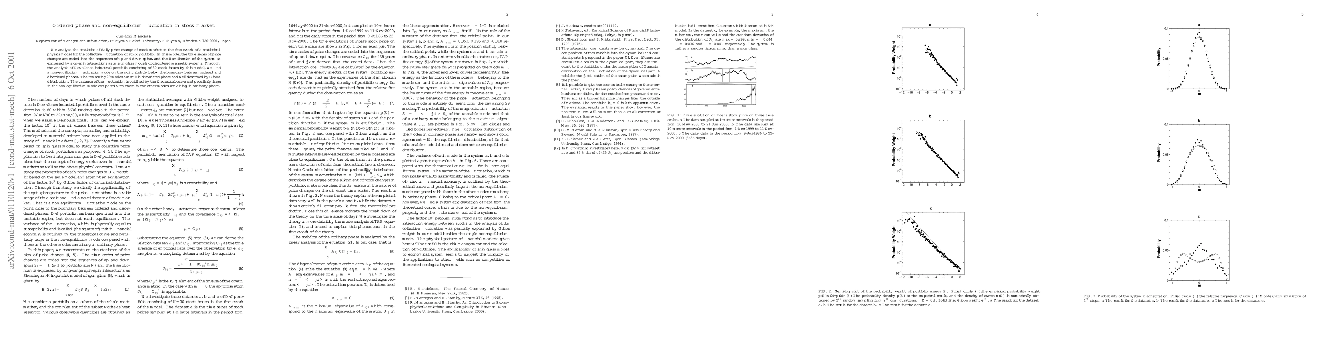 The paper analyzes stock market price fluctuations using a statistical physics model, finding a distinct non-equilibrium fluctuation mode below the ordered-disordered phase boundary in the Dow-Jones portfolio. This mode exhibits significantly larger variance compared to modes in the disordered phase, which follow Gibbs distribution.