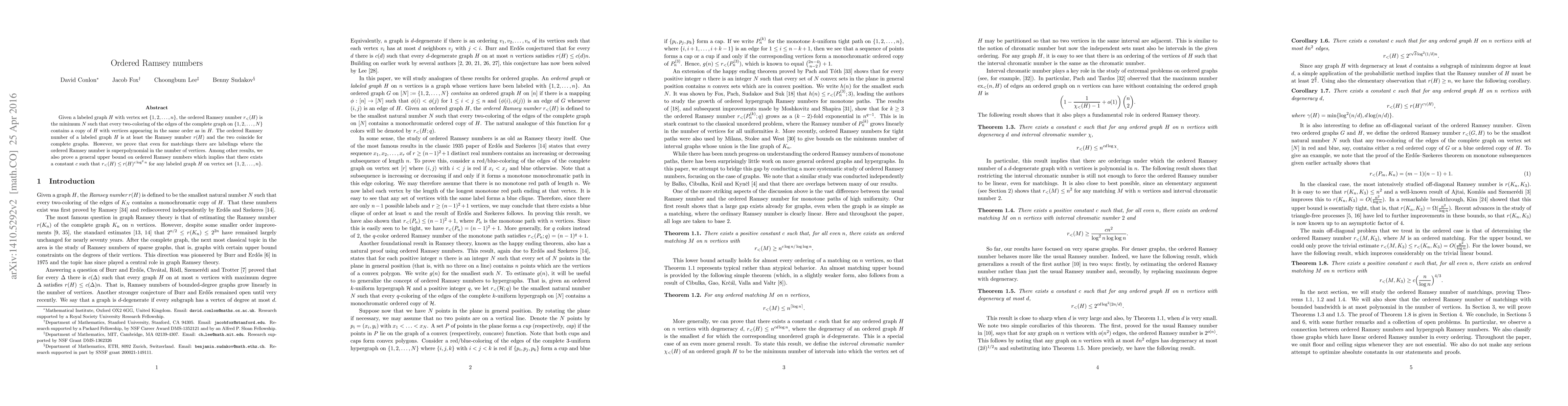 This paper investigates ordered Ramsey numbers, which determine the minimum size of a complete graph whose edges, colored with two colors, must contain a specific labeled graph $H$ in order. The authors prove that for certain labelings, the ordered Ramsey number can be superpolynomial in the number of vertices, even for simple structures like matchings. They also establish an upper bound showing that $r_<(H) \leq r(H)^{c \log^2 n}$ for any labeled graph $H$.