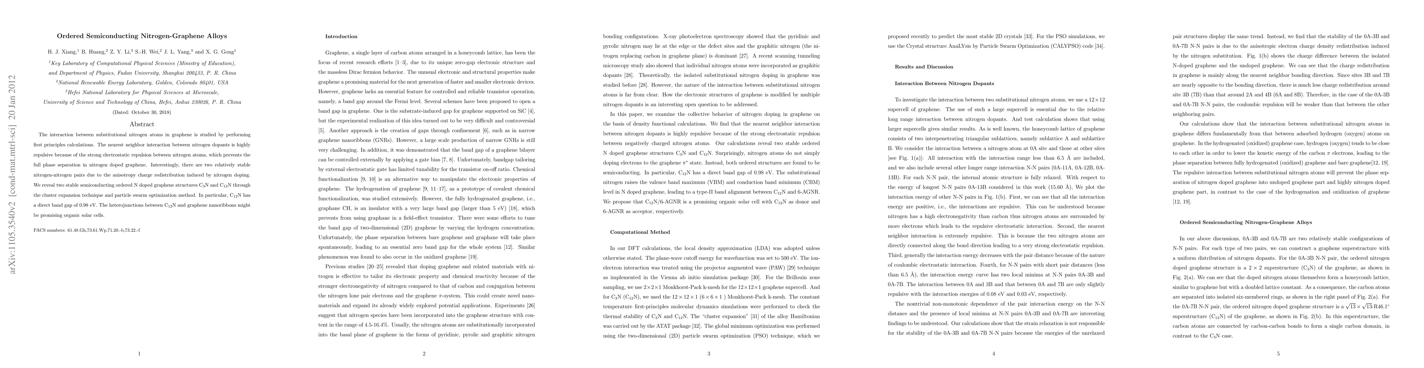 The study reveals two stable semiconducting ordered nitrogen-doped graphene structures, C3N and C12N, with C12N exhibiting a direct band gap of 0.98 eV, potentially enabling applications in organic solar cells through heterojunctions with graphene nanoribbons.
