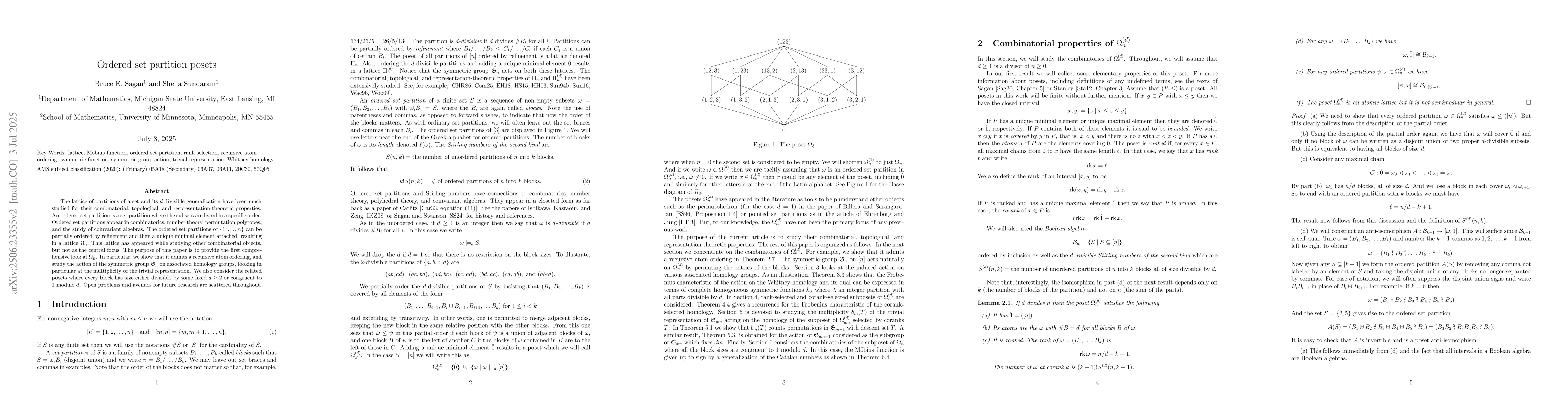 The lattice of partitions of a set and its d-divisible generalization have been much studied for their combinatorial, topological, and respresentation-theoretic properties. An ordered set partition is a set partition where the subsets are listed in a specific order. Ordered set partitions appear in combinatorics, number theory, permutation polytopes, and the study of coinvariant algebras. The ordered set partitions of {1,...,n} can be partially ordered by refinement and then a unique minimal element attached, resulting in a lattice Omega_n. But this lattice has received no attention to our knowledge. The purpose of this paper is to provide the first comprehensive look at Omega_n. In particular, we determine its M\"obius function, show that it admits a recursive atom ordering, and study the action of the symmetric group S_n on associated homology groups, looking in particular at the multiplicity of the trivial representation. We also consider the related posets where every block has size either divisible by some fixed d at least 2, or congruent to 1 modulo d.